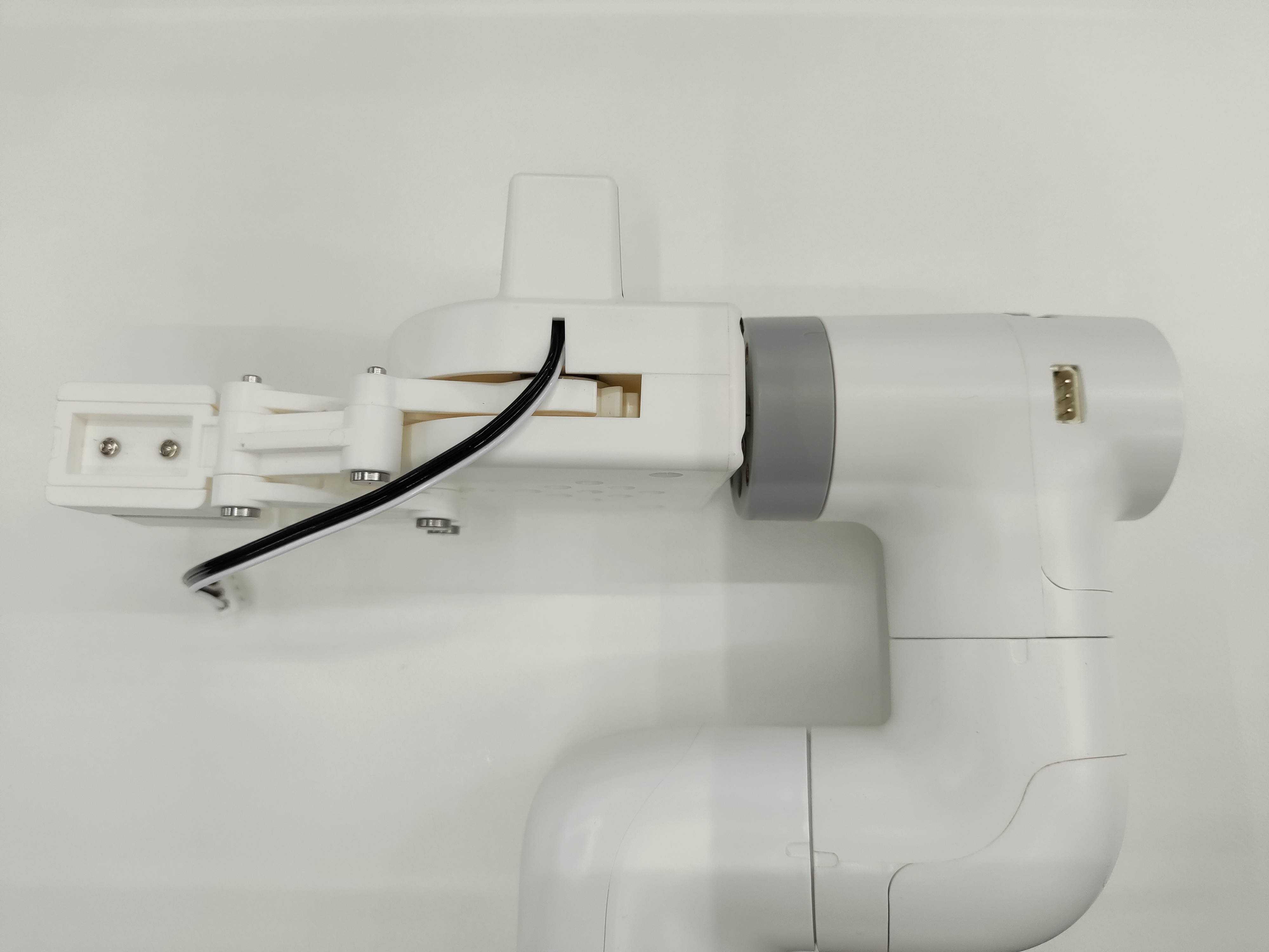 2. 将插好连接件的夹爪对准机械臂末端插孔插入:
