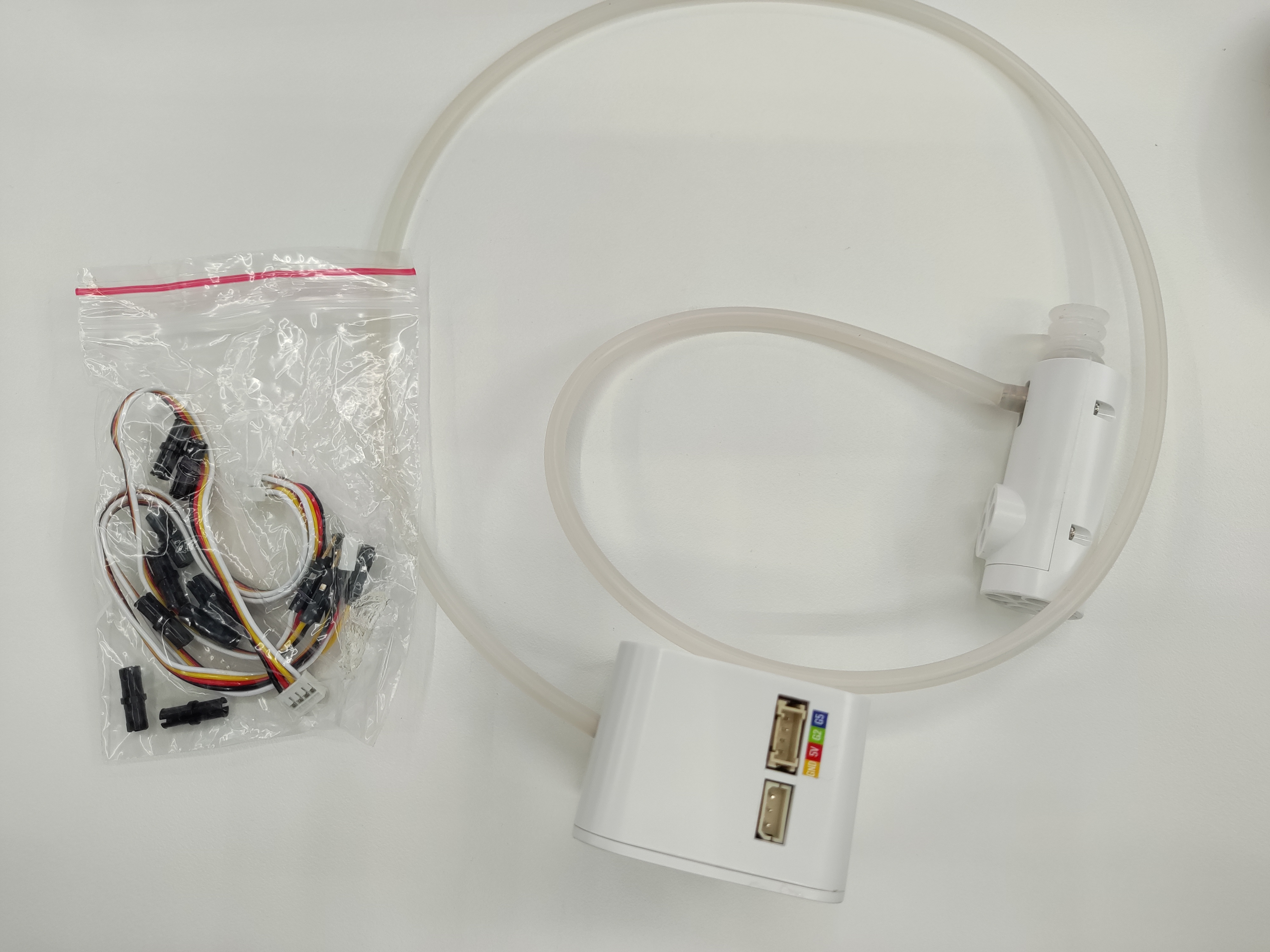- Check that the accessories package contains all the necessary items: LEGO connectors, DuPont cables, and a dual-head suction pump.