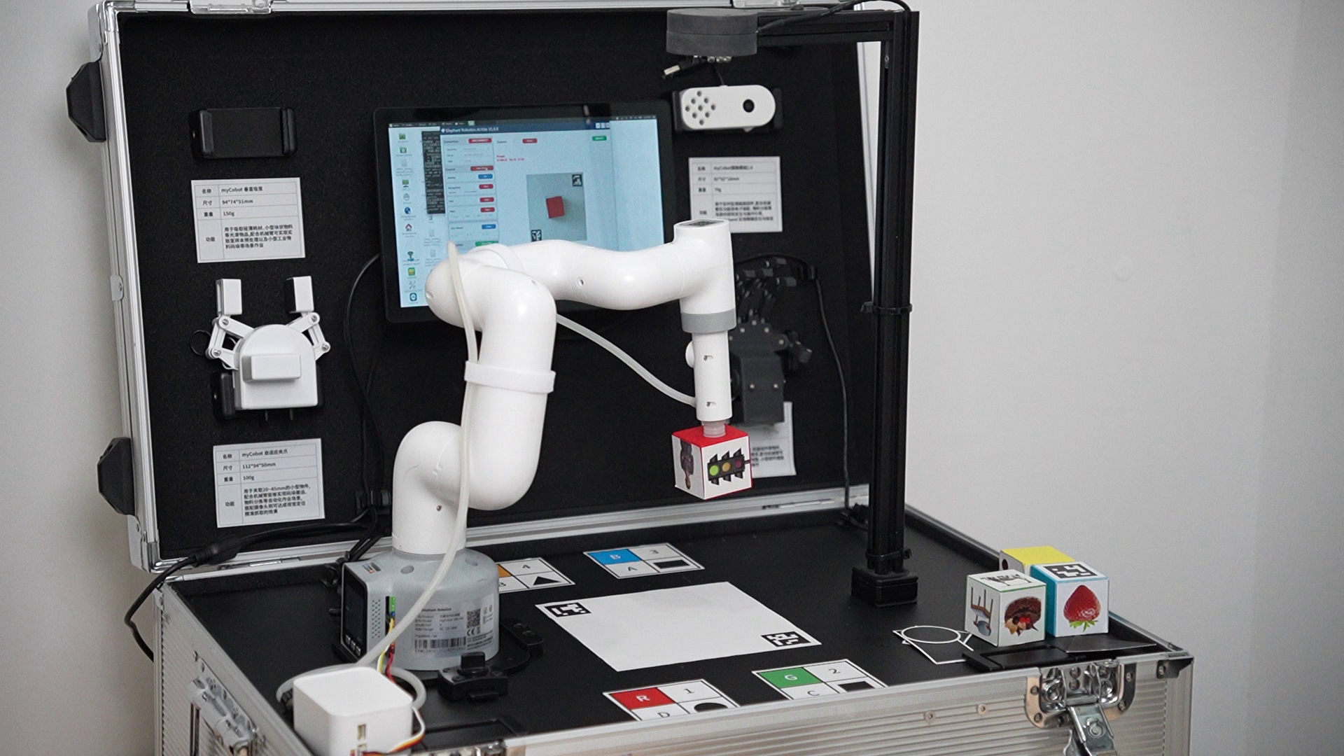 Using Python + OpenCV + PyQt5, perform color recognition, shape recognition, feature point image recognition, AR QR code recognition, and YOLOv5 image recognition on the robotic arm.