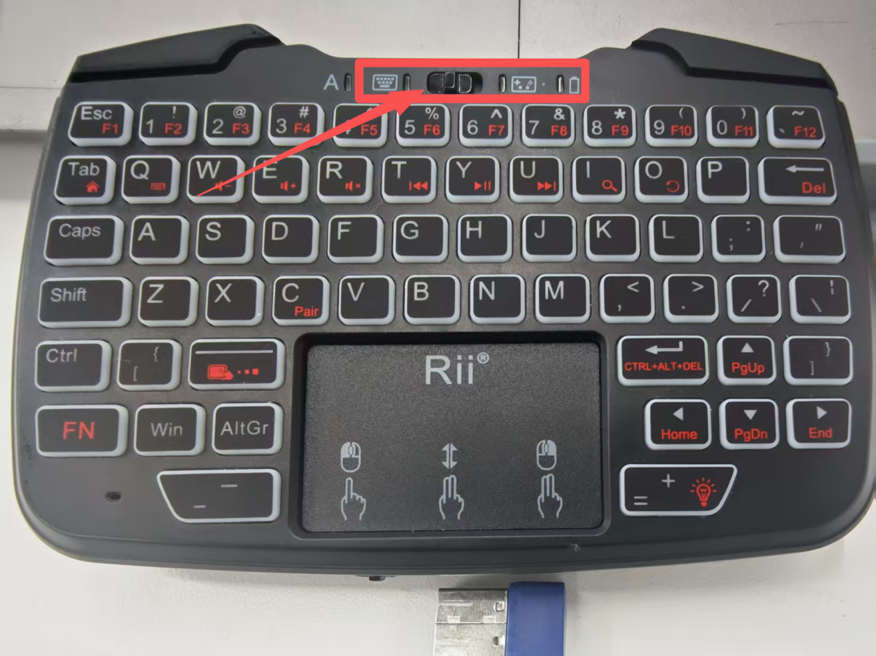 - The gamepad keyboard and keyboard modes are as follows: Pull the button to the left to switch to keyboard mode, and to the right to switch to gamepad control mode.