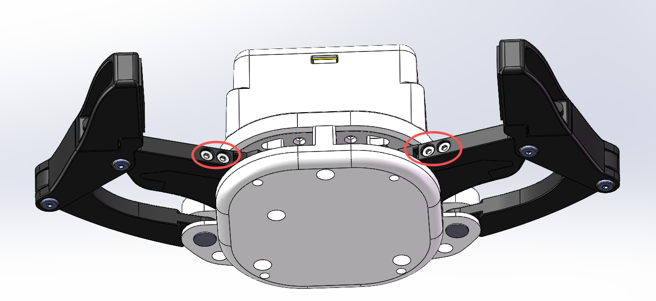 更换柔性指尖,分别放置在左右运动杆位置,使用对角宽度为2mm内六角扳手,将原来同位置拆除的螺丝重新锁好