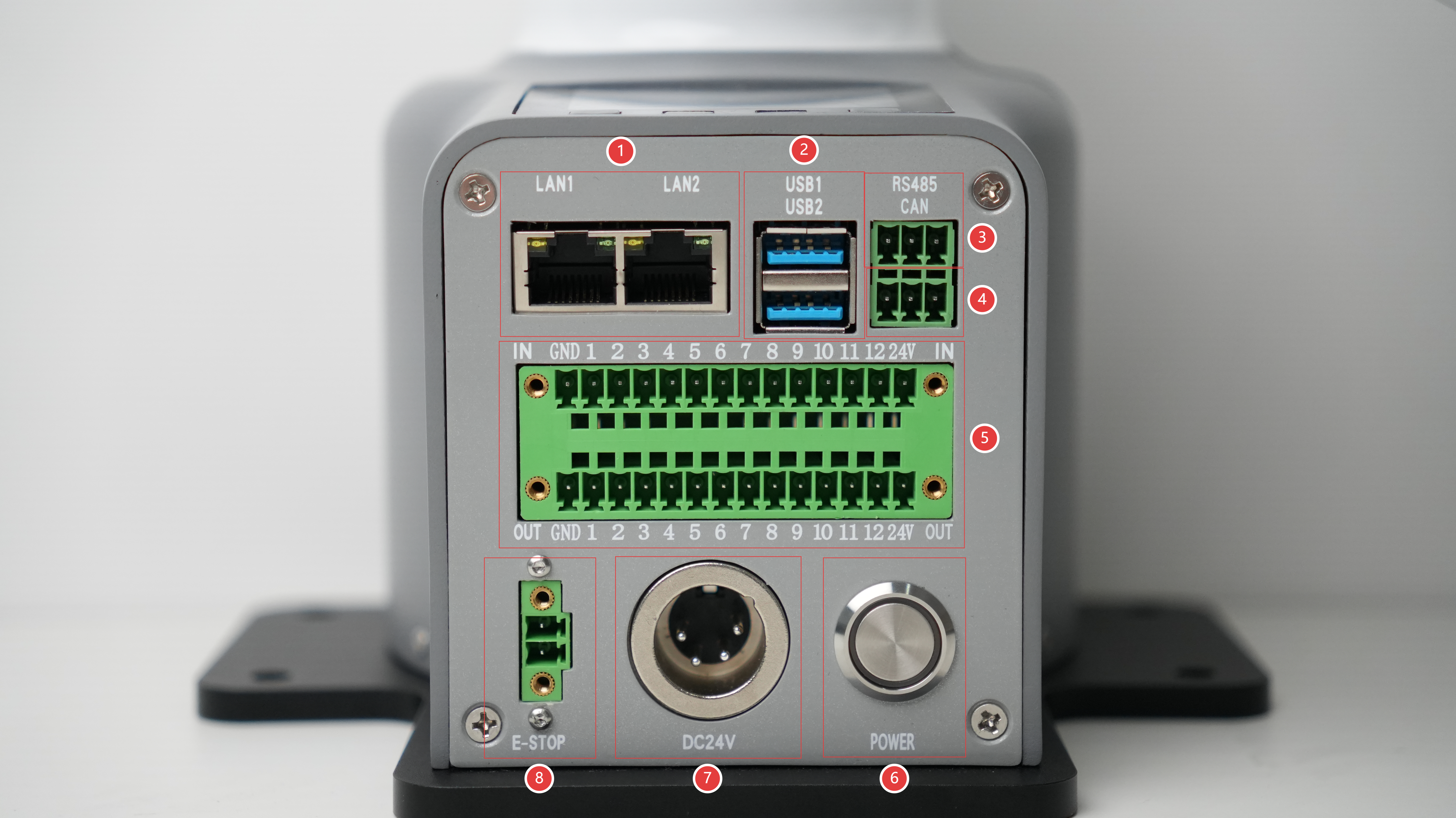 - ⑧ 急停接口:连接外部急停按钮,紧急情况下切断电源,保障安全。