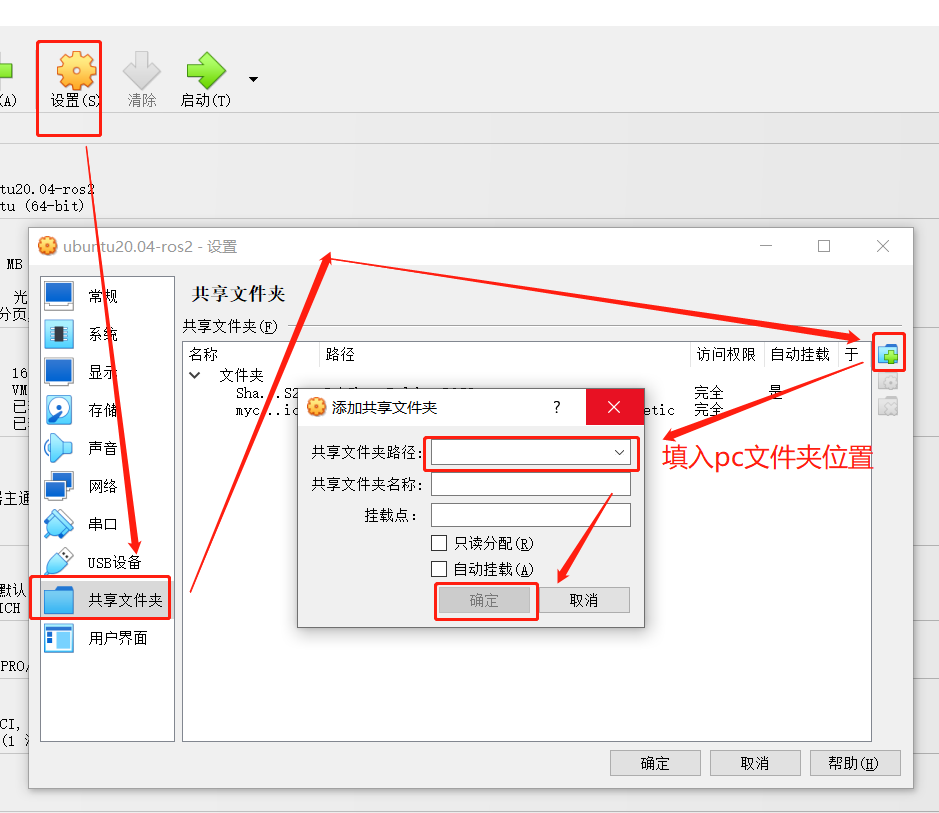 A:按下图设置共享文件夹,可以将PC中的文件传输到虚拟机中