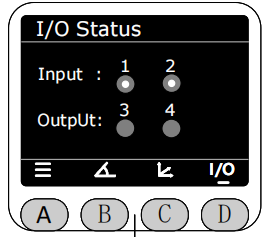 按下D键显示当前末端M8接口的输入输出状态,没有小点的为低电平,白点为高电平。