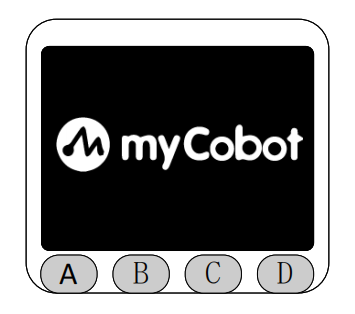 MiniRobot是一个由TFT屏幕以及按键组成的交互式模块,底部的按键从左至右依次为A、B、C、D键,可通过按键切换显示不同的机械臂信息同时也可通过按键控制机械臂状态。