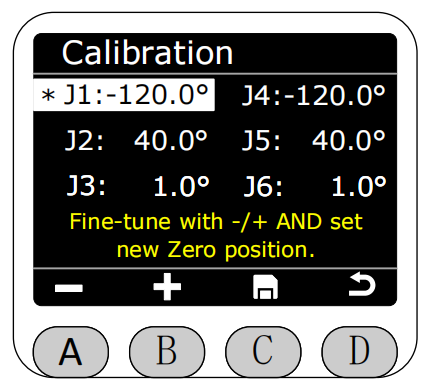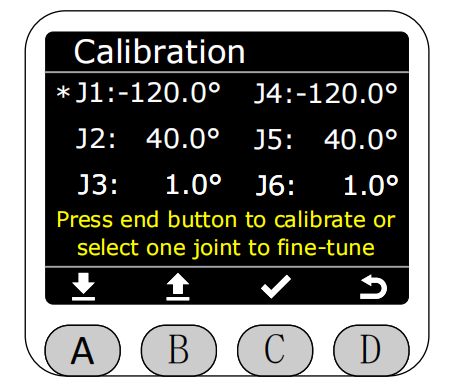 进入Calibration功能后,通过A、B键可选择想要校准的关节。