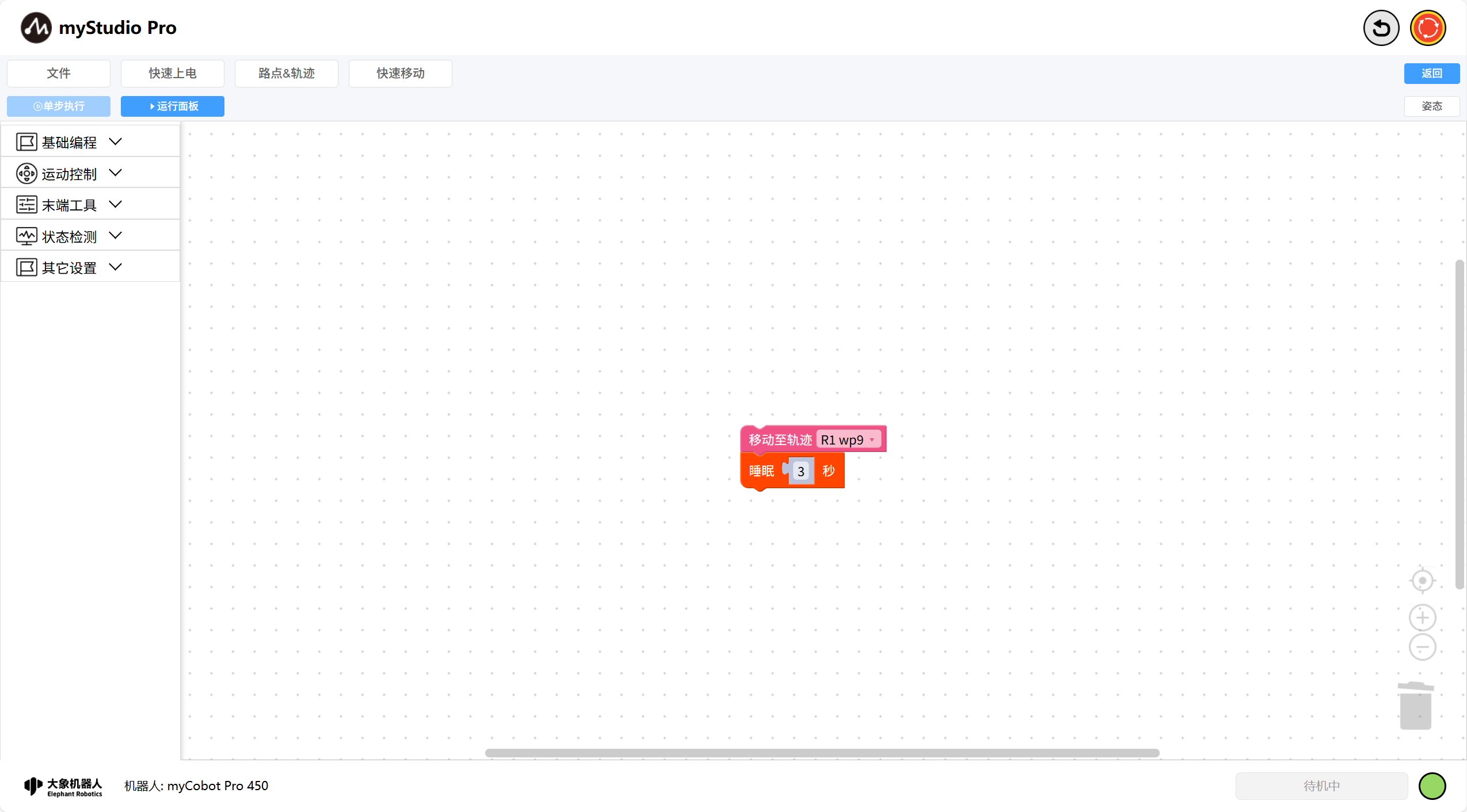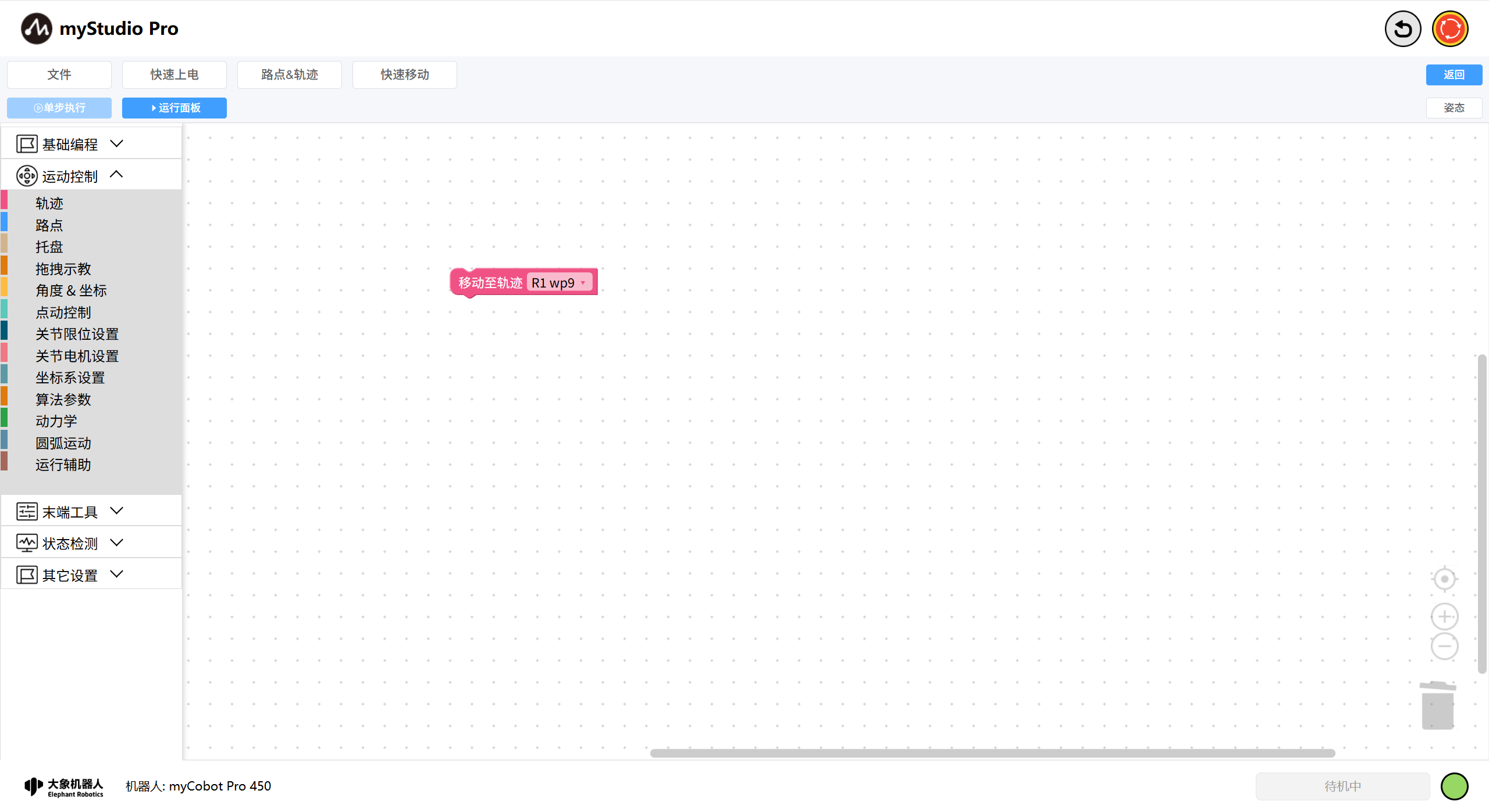 选择完成后打开运行面板,点击运行全部,可以积木块运行的方式对该轨迹进行复现。
