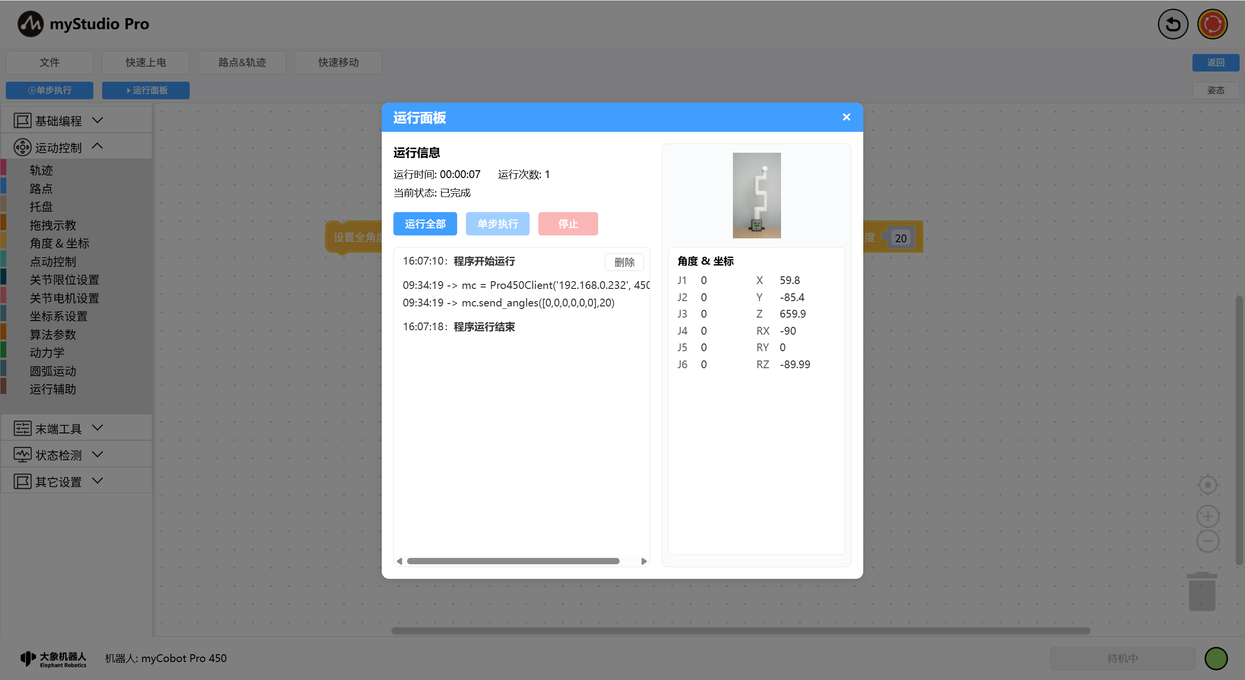 myBlockly编程控制状态: