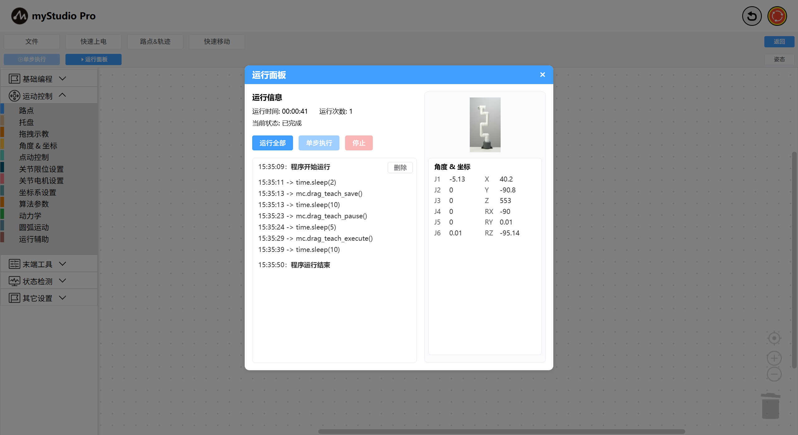 这一功能可以很方便地进行规划轨迹(对过程轨迹精度不高的任务),以便操作者记录和复现轨迹,而无需人工编程,降低了对操作者的门槛,提高了效率。