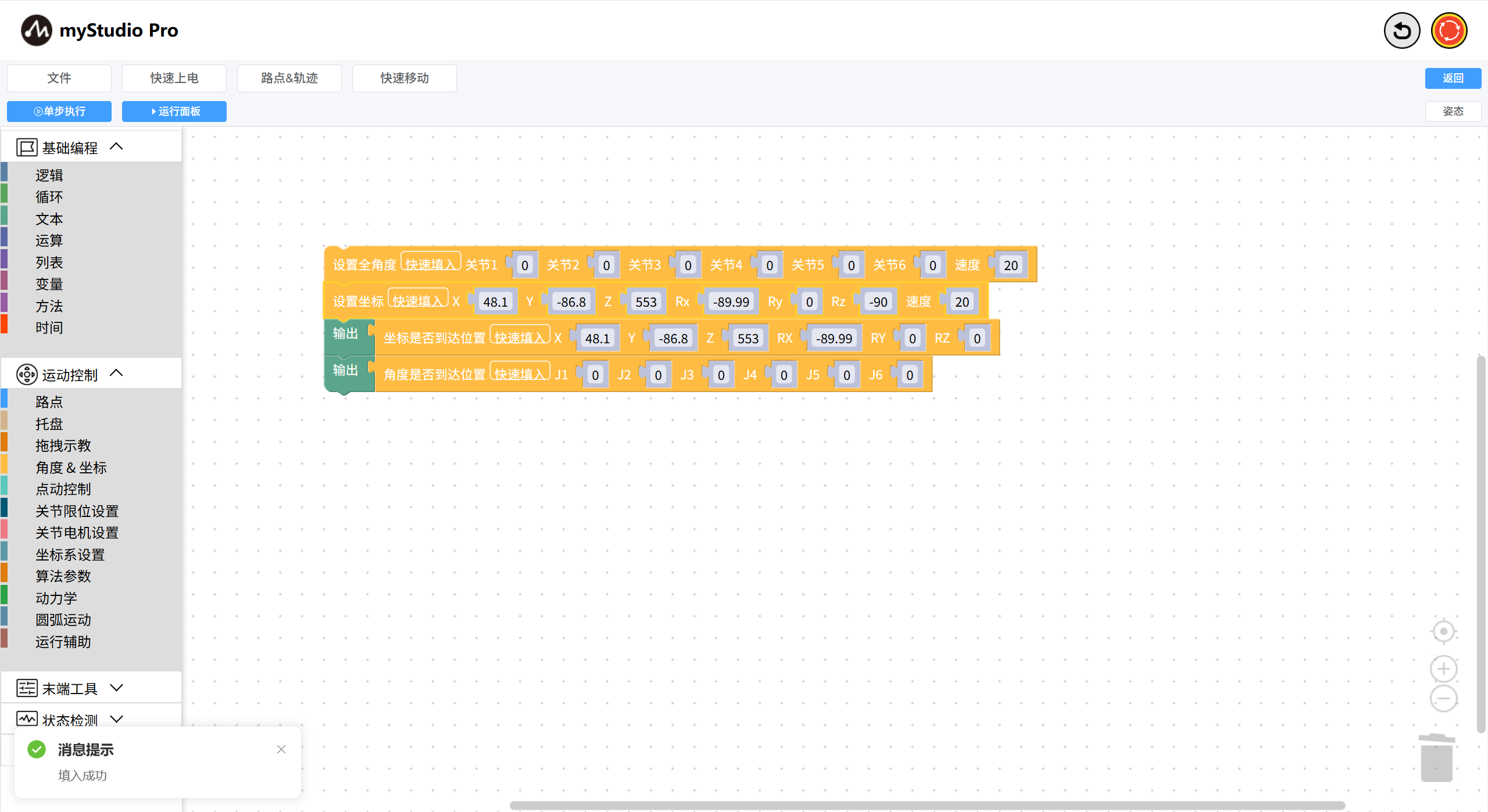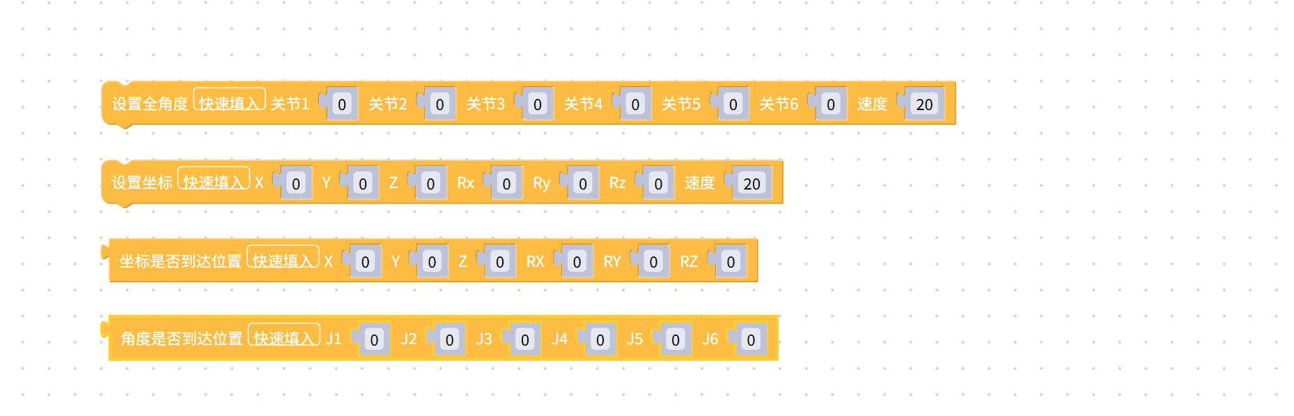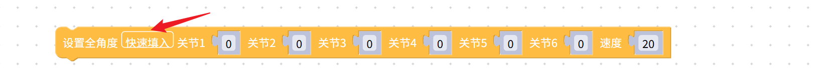 以设置设置全角度积木块为例,首先需要选中积木块,然后点击积木块中的 快速填入按钮即可。