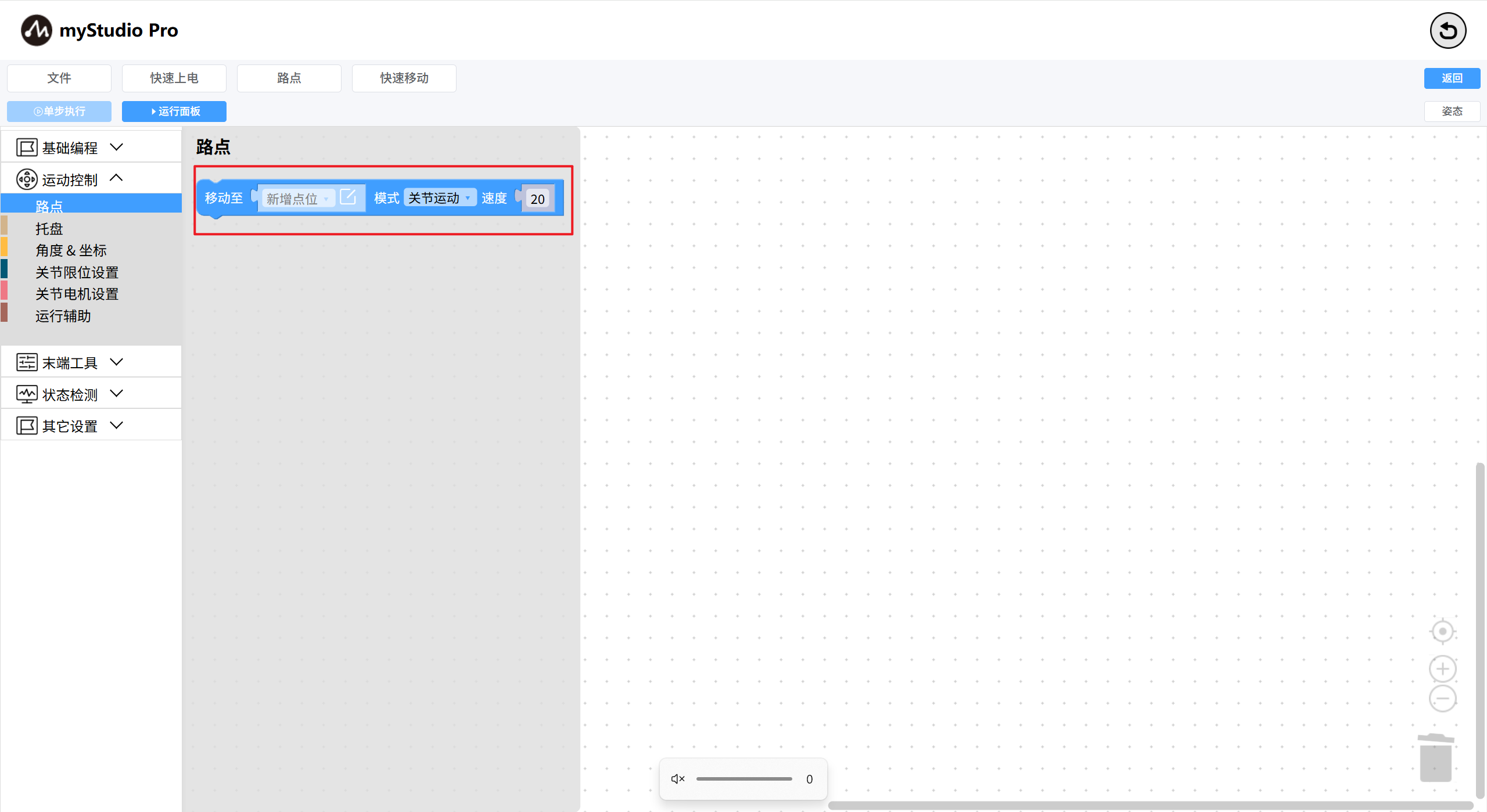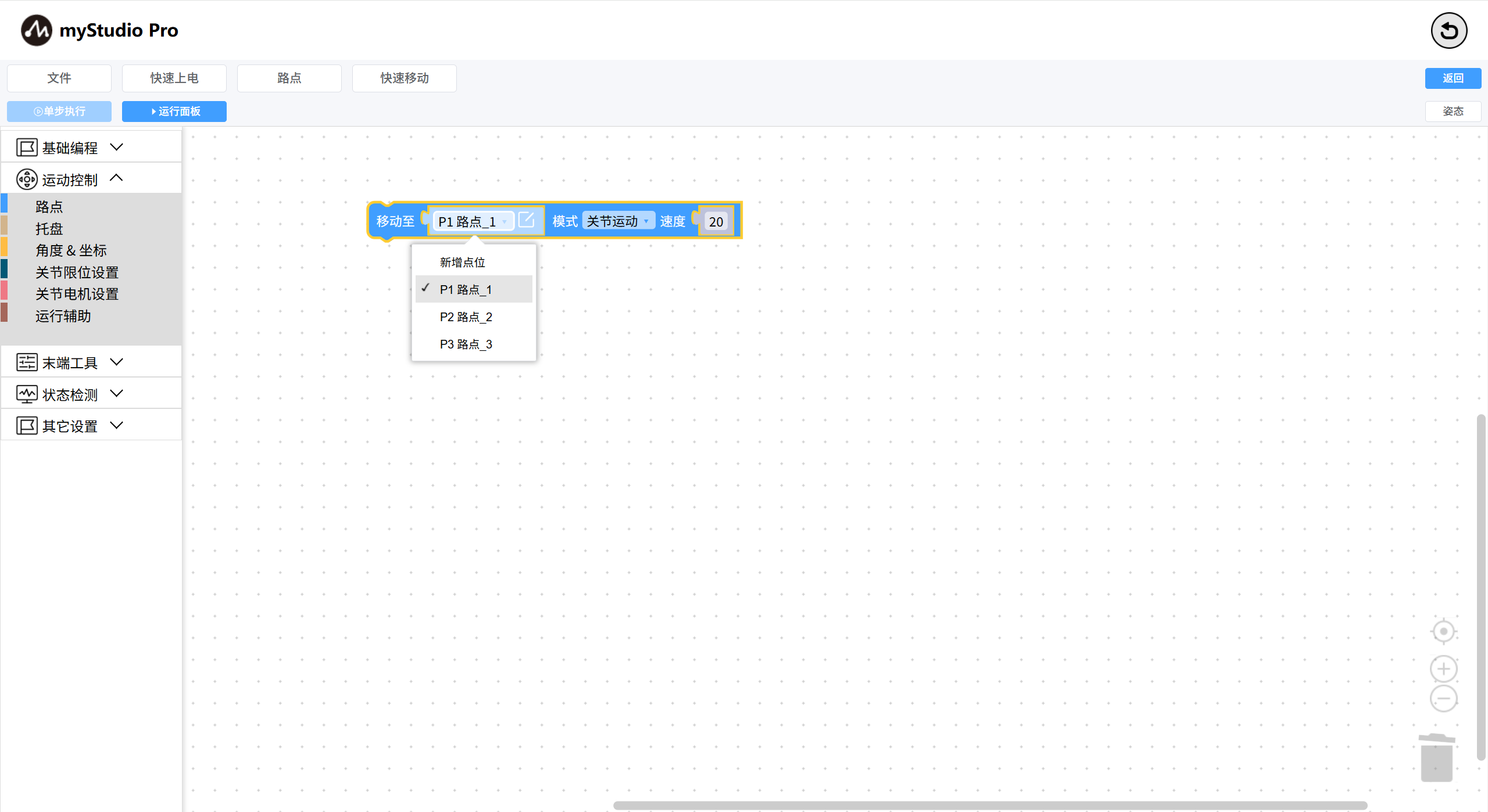 按钮,会在工作区最后一个积木块上拼接生成的路点积木块。