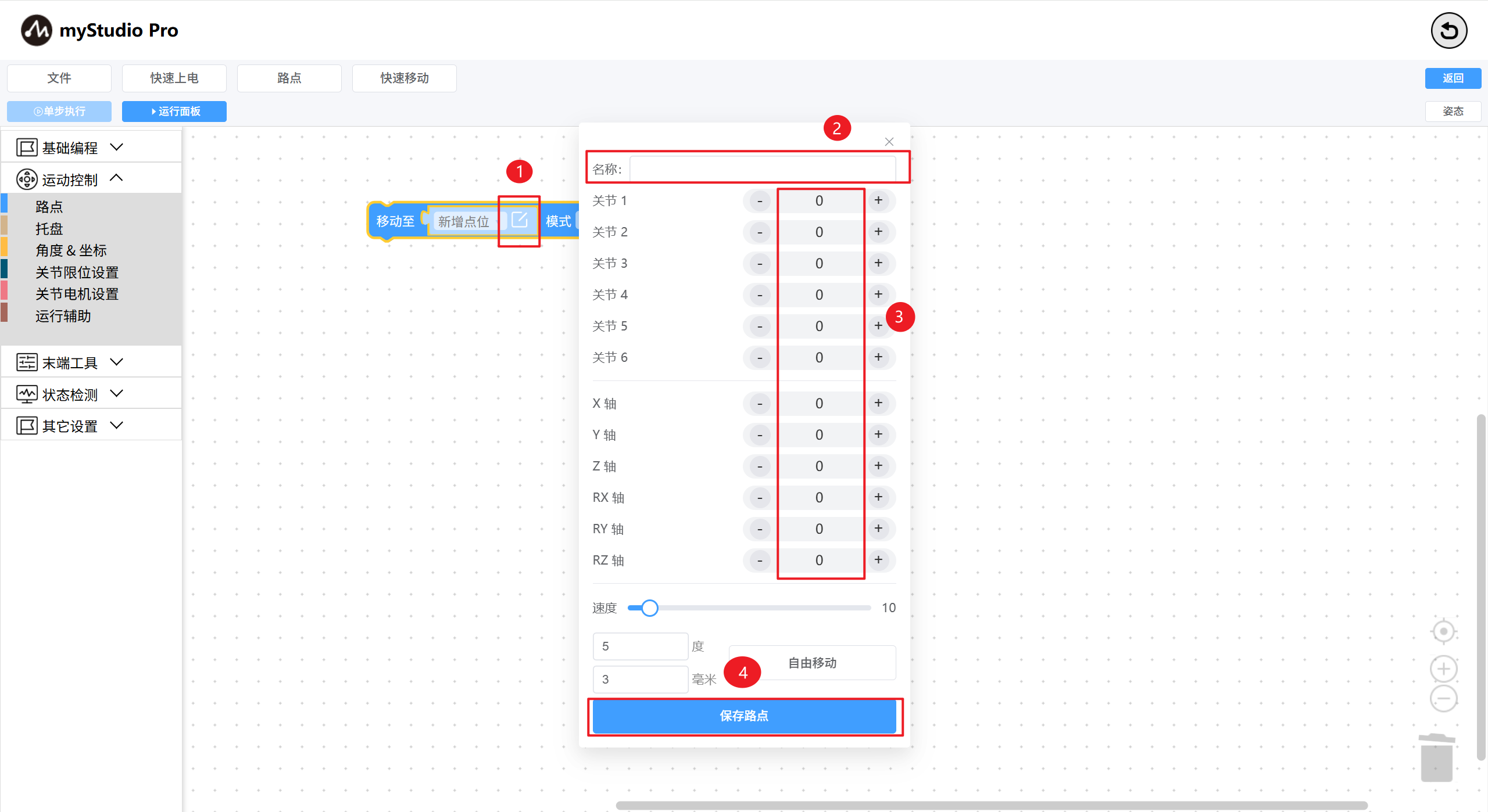 4 | 点击保存路点,可以新增或者修改路点数据 |