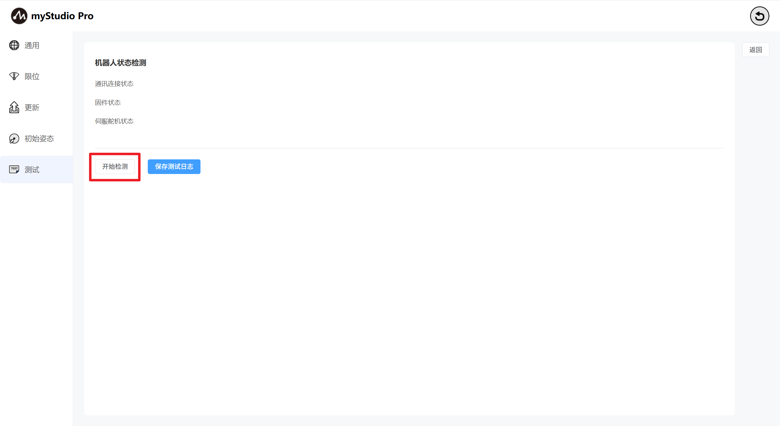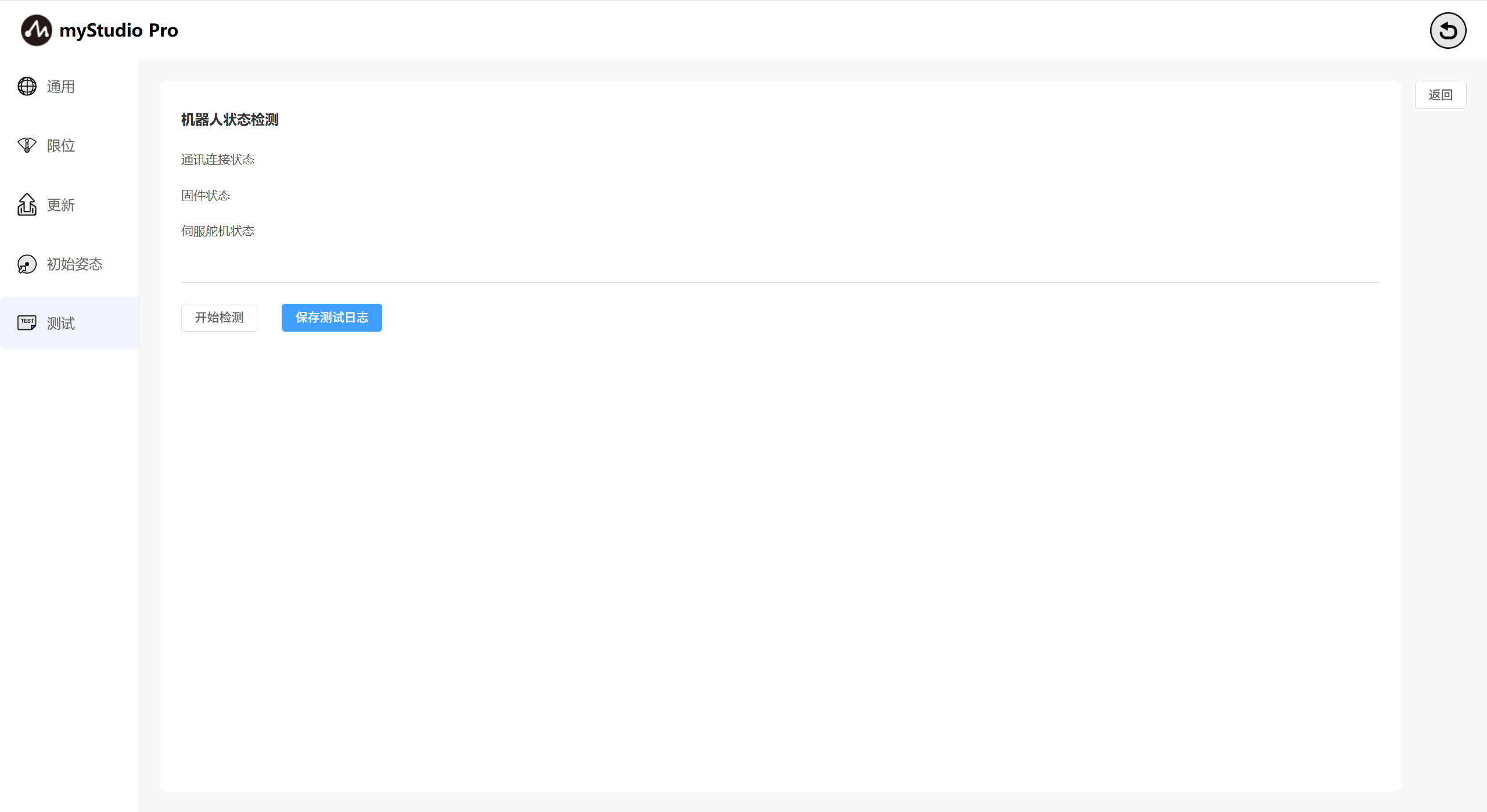 页面:主要测试机械臂的通讯连接、固件、舵机等状态。