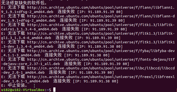 - 若安装过程中,控制台终端出现如下错误信息,则需要更换/etc/apt/sources.list 中的软件源列表。