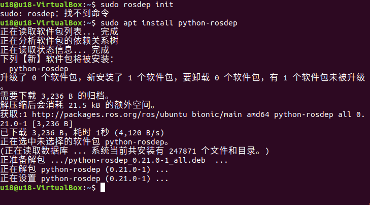 如果您的系统没有安装 rosdep,请使用命令sudo apt install python-rosdep