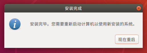 待安装完成,在弹出的对话框中,点击“现在重启”按钮,完成安装。