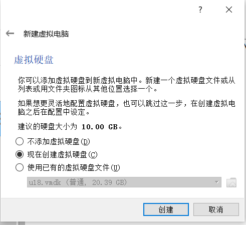 - 选择现在创建虚拟硬盘,进行创建。