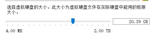 分配虚拟硬盘大小,由于需要安装 ubuntu 系统,而且还会在该系统中进行操作,建议大小不要低于 20G。