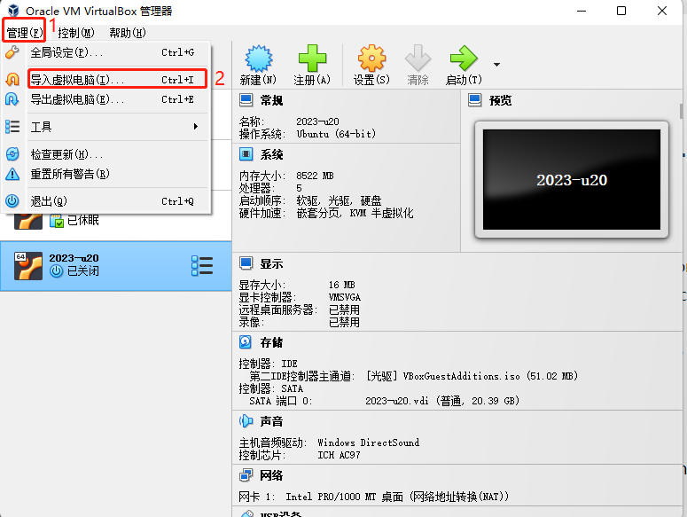 注意: 为了降低环境搭建难度,我们将给出 Linux 系统镜像(Ubuntu 20.04)、Virtual Box 安装包以及其扩展包。 接下来将教导大家如安装 Virtual Box 以及导入 Linux 系统镜像(默认用户为u202