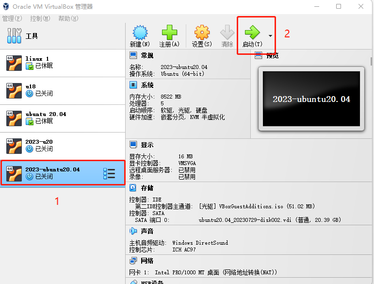 然后打开虚拟机进行 ubuntu 安装,并点击启动。