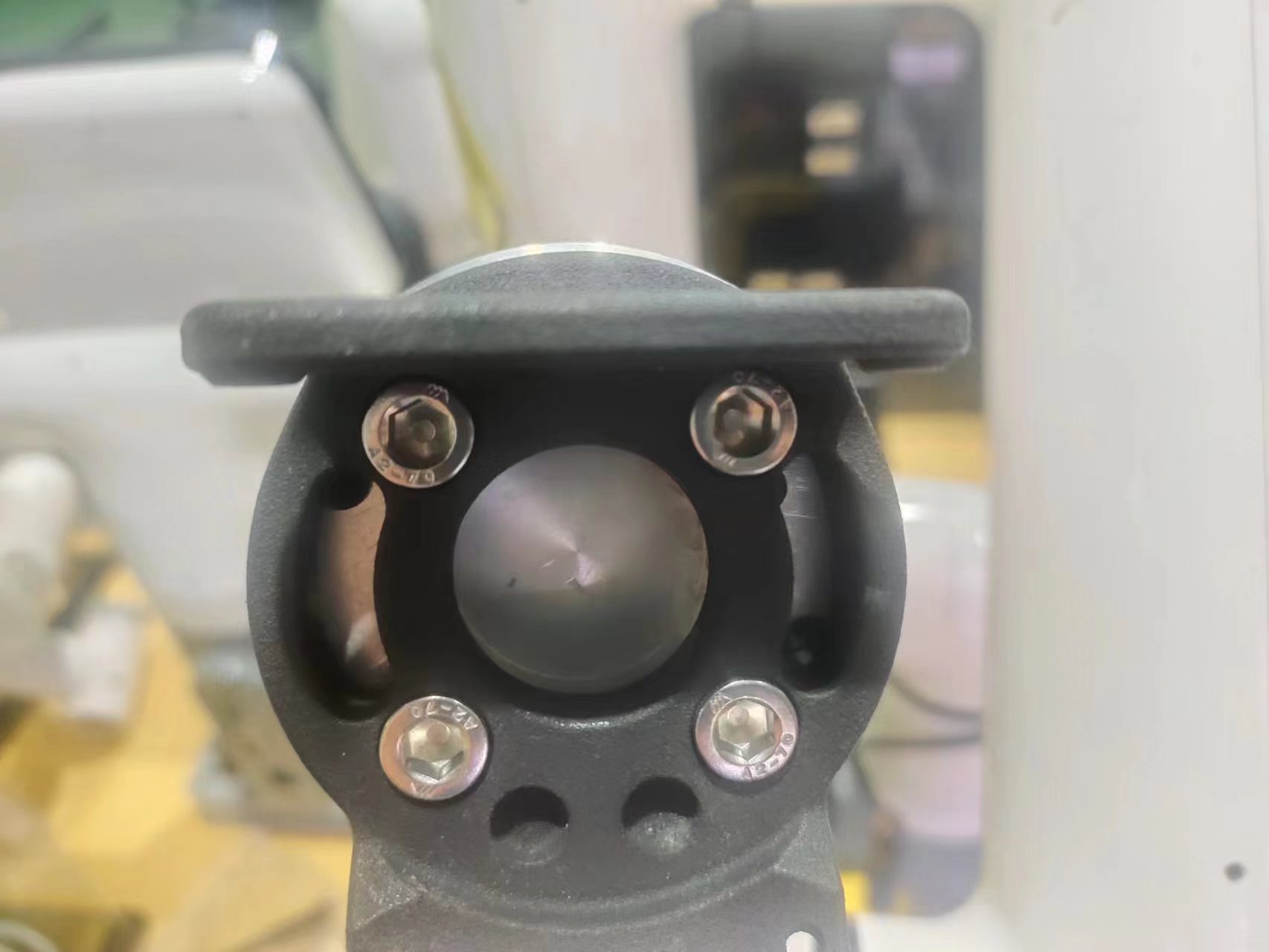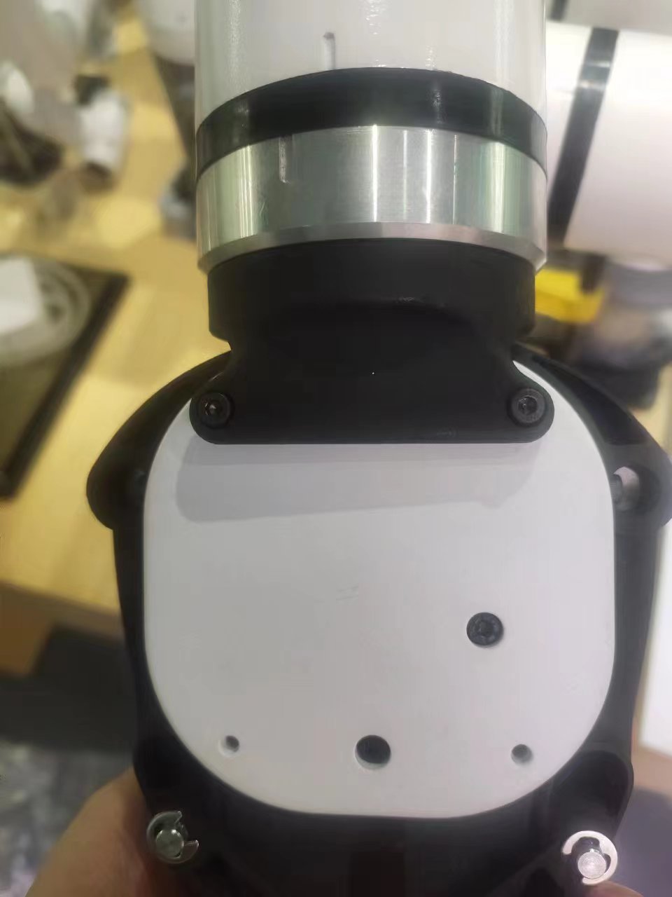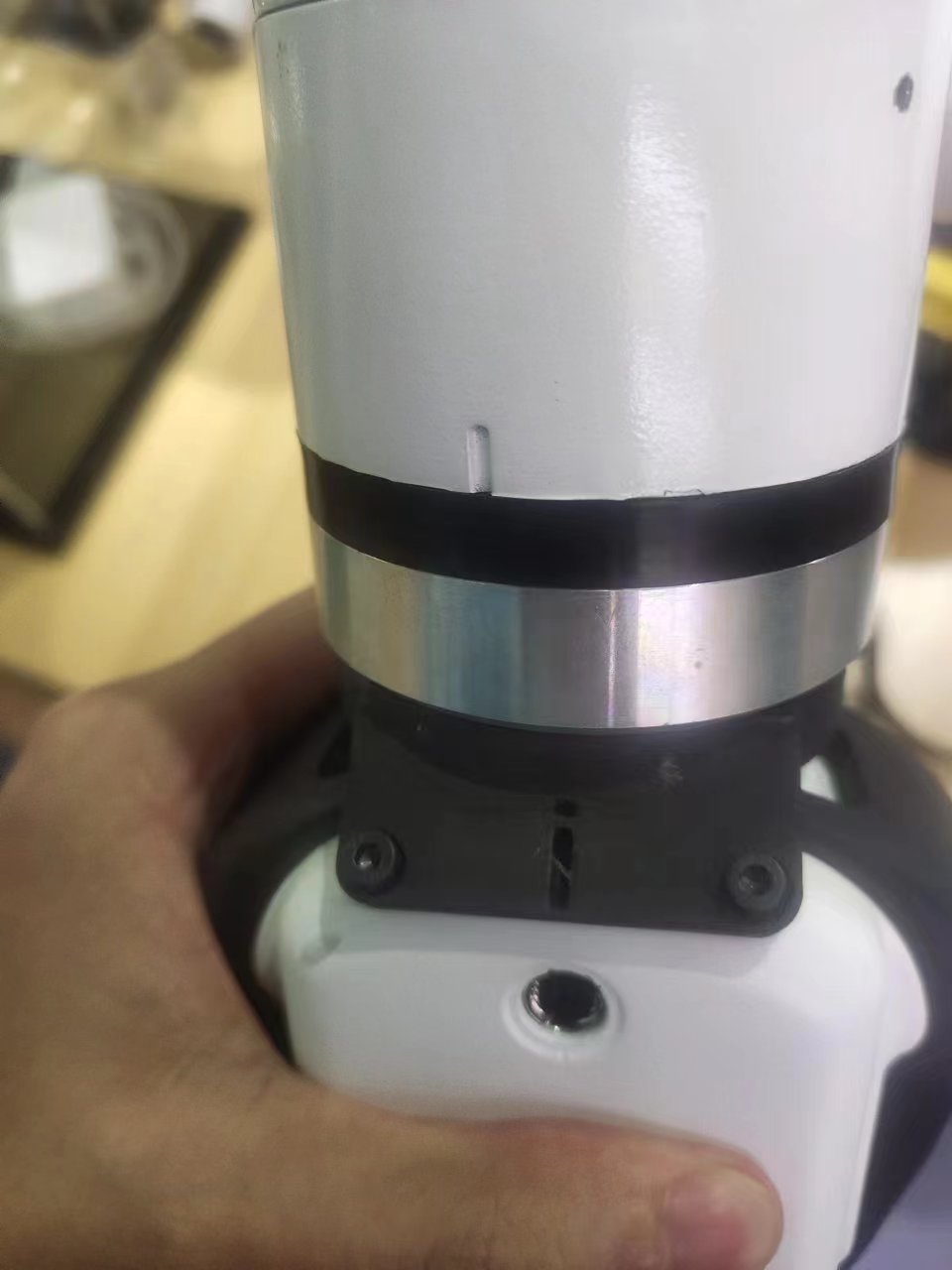 将垫片对准机械臂末端孔位,配合螺丝拧紧: