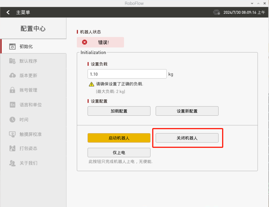 在roboflow先关闭机器人,手动将夹爪张开到最大