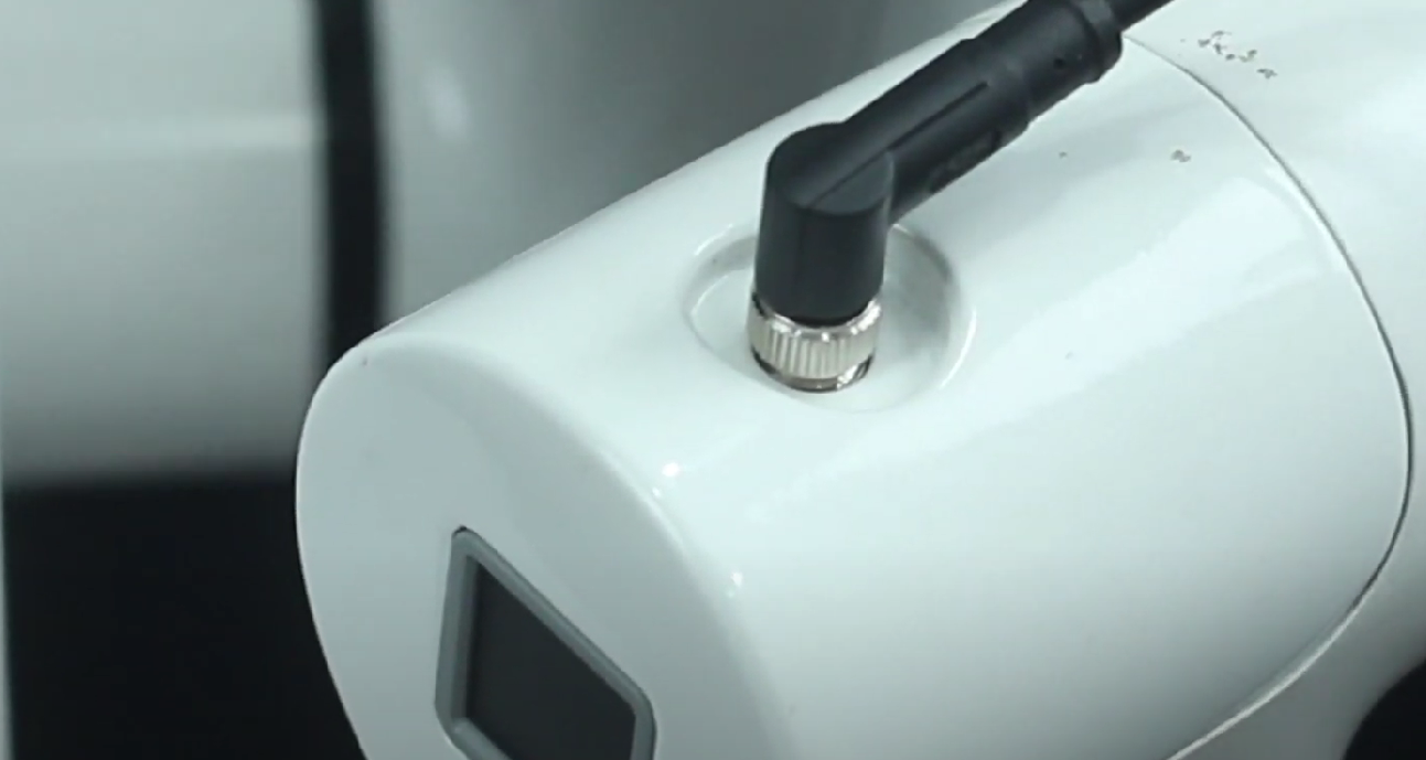 - 将 m8 线对准机械臂的接口,注意接口处有缺口,连接线有对应突起,确认方向后插入,并拧紧:
