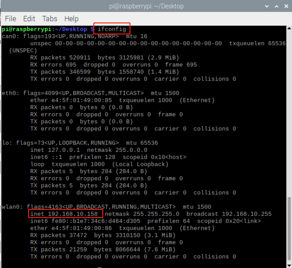 确认机械臂的IP地址:终端输入 ifconfig 获取