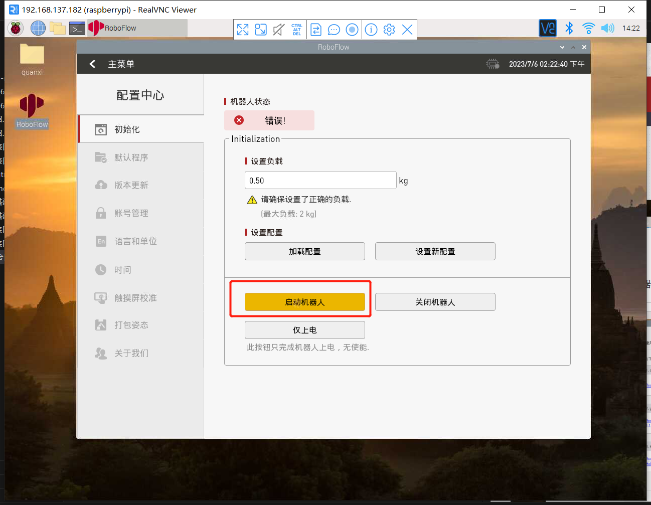 然后再启动机器人