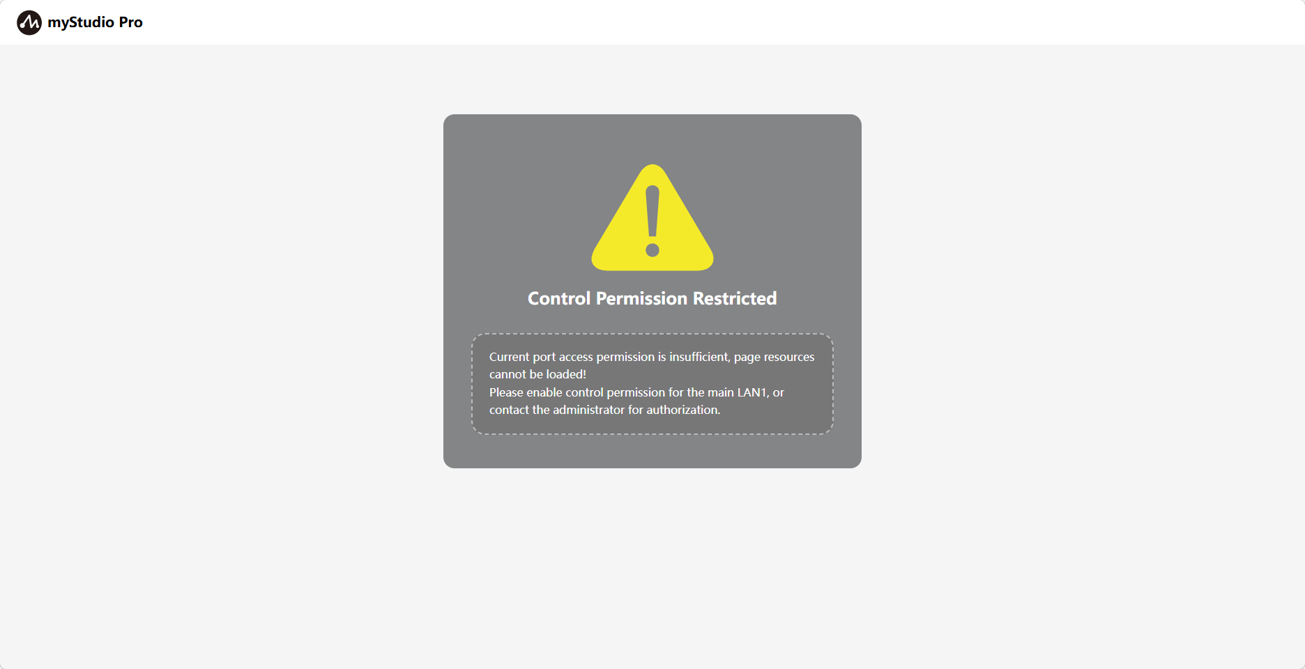In your browser, enter the IP address of your WLAN port to access myStudio Pro (Wi-Fi connected & control permissions not enabled).