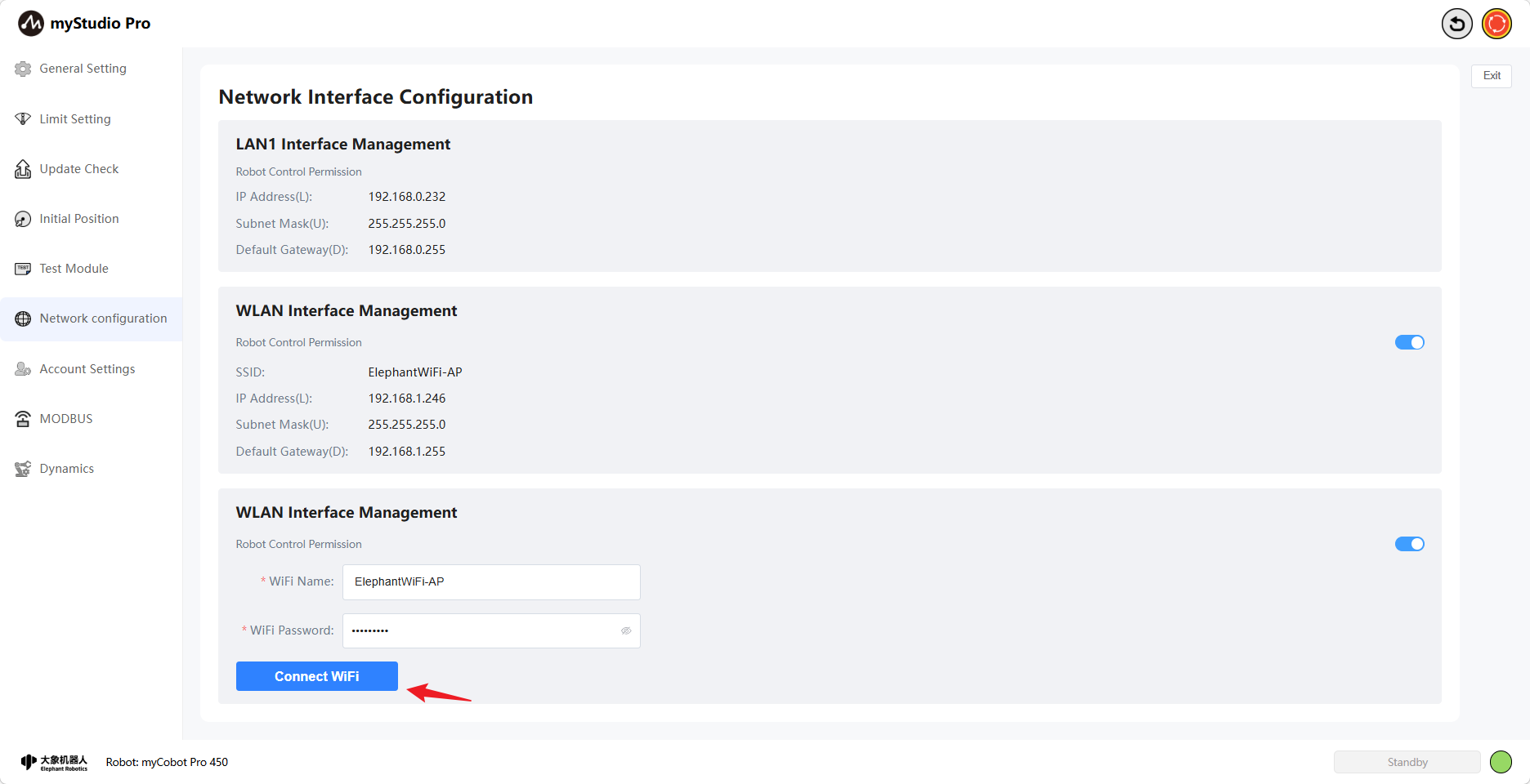 Simultaneously, you can connect to WiFi on this page. Enter the WiFi username and password you want to connect to and click the Connect WiFi button to connect.