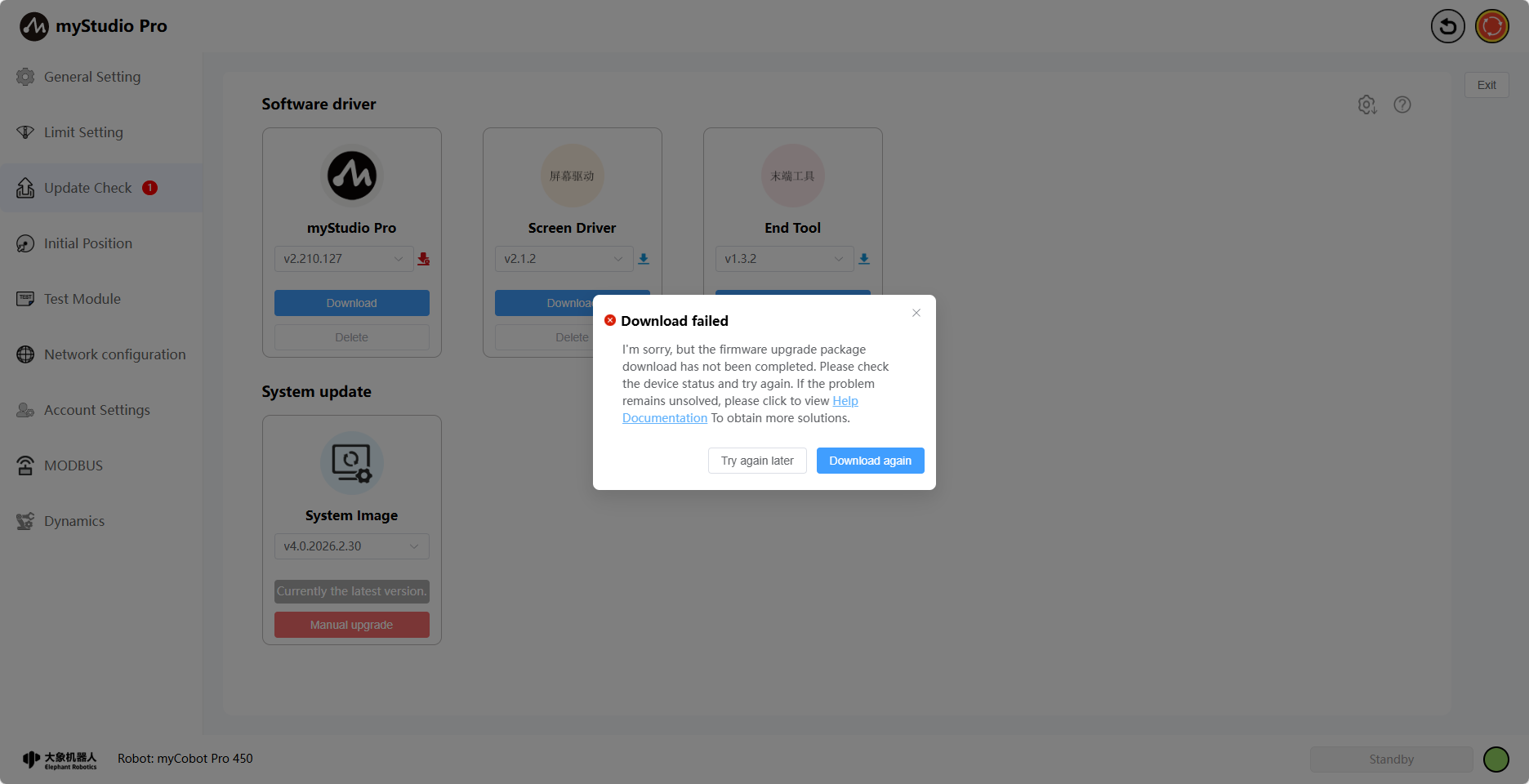 When downloading Failed, a failure pop-up will appear and the icon will turn red. Clicking the [Re-download] button will re-download all previously failed drivers.