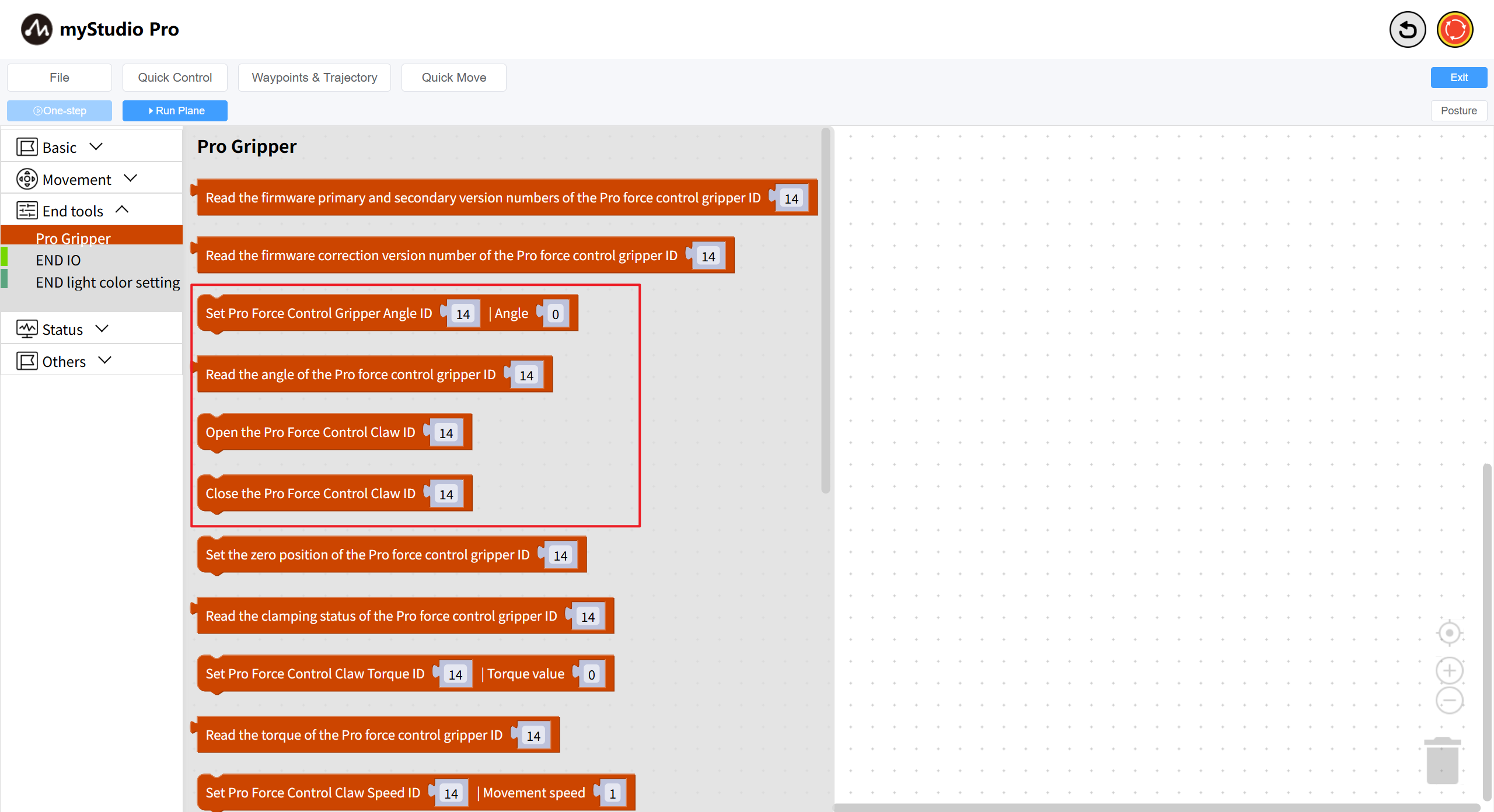 1: Set Pro Force Control Gripper Angle