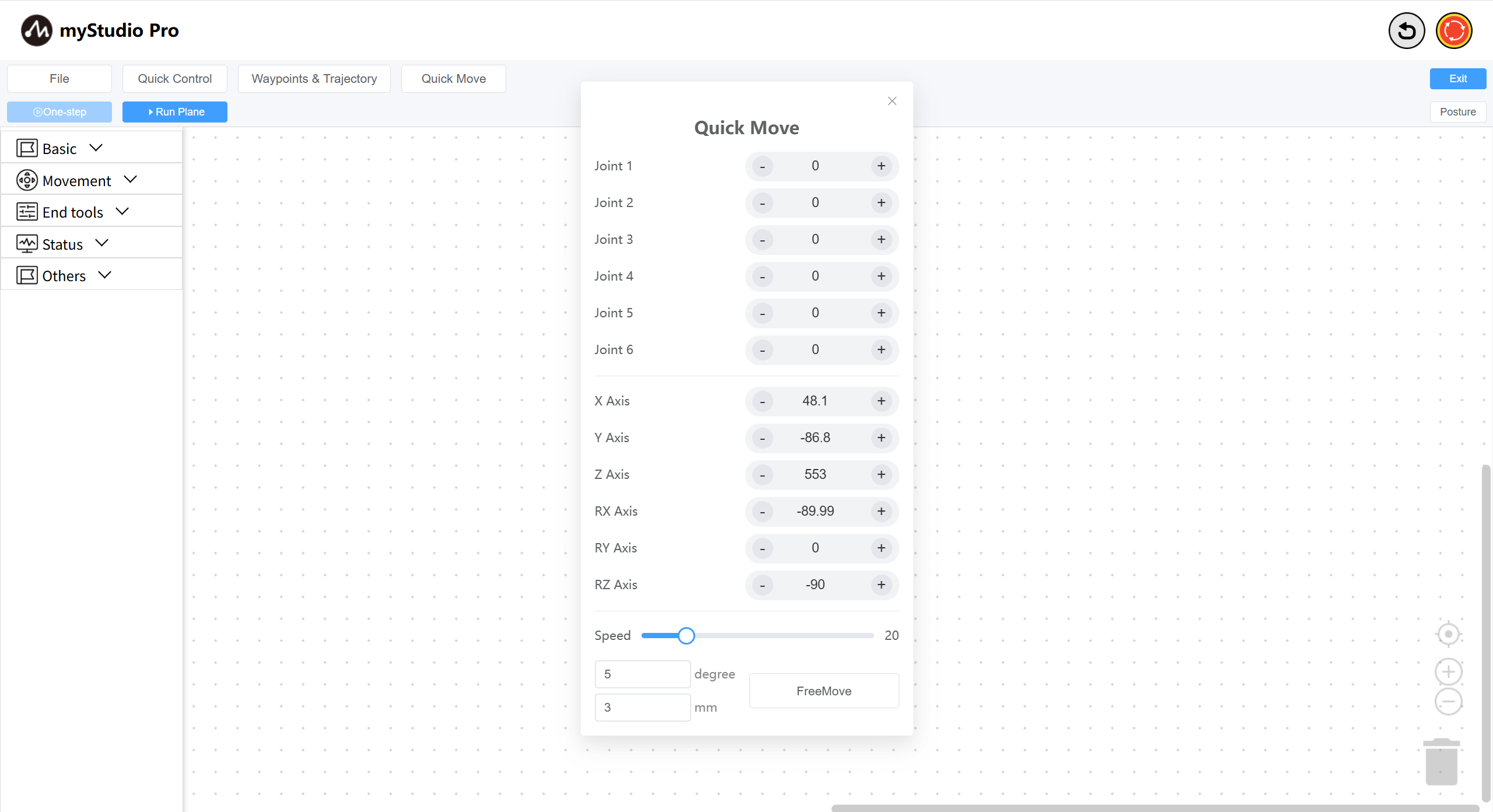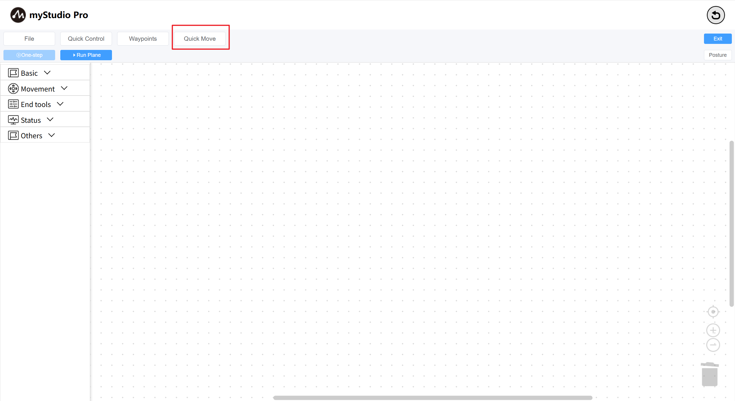 Note: There are two Quick Move control panels in myStudio, and their functions are similar.