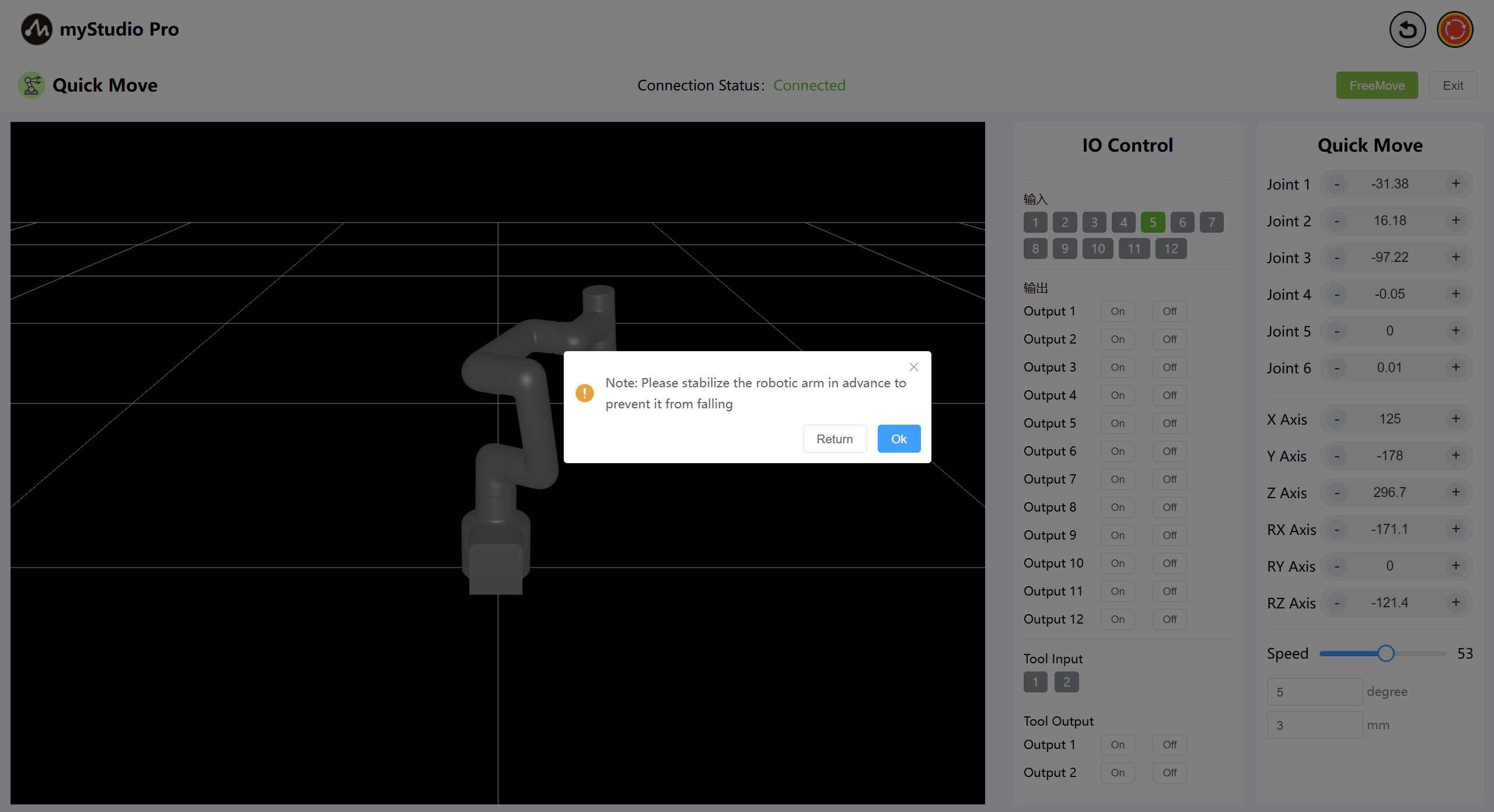 Note: After clicking, a secondary confirmation pop-up window will appear first to prevent the mechanical arm joint from loosening due to accidental clicking and causing a fall.