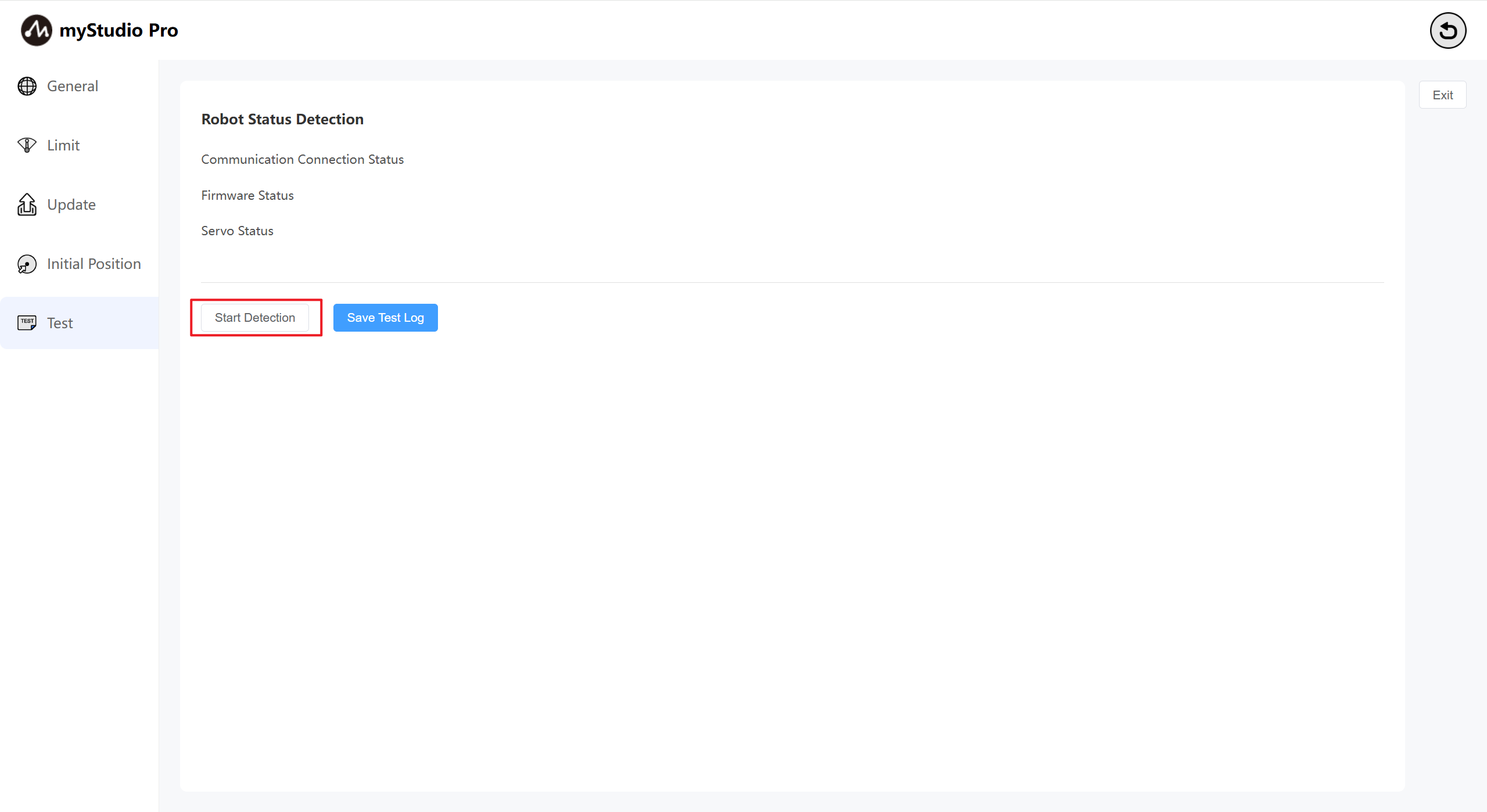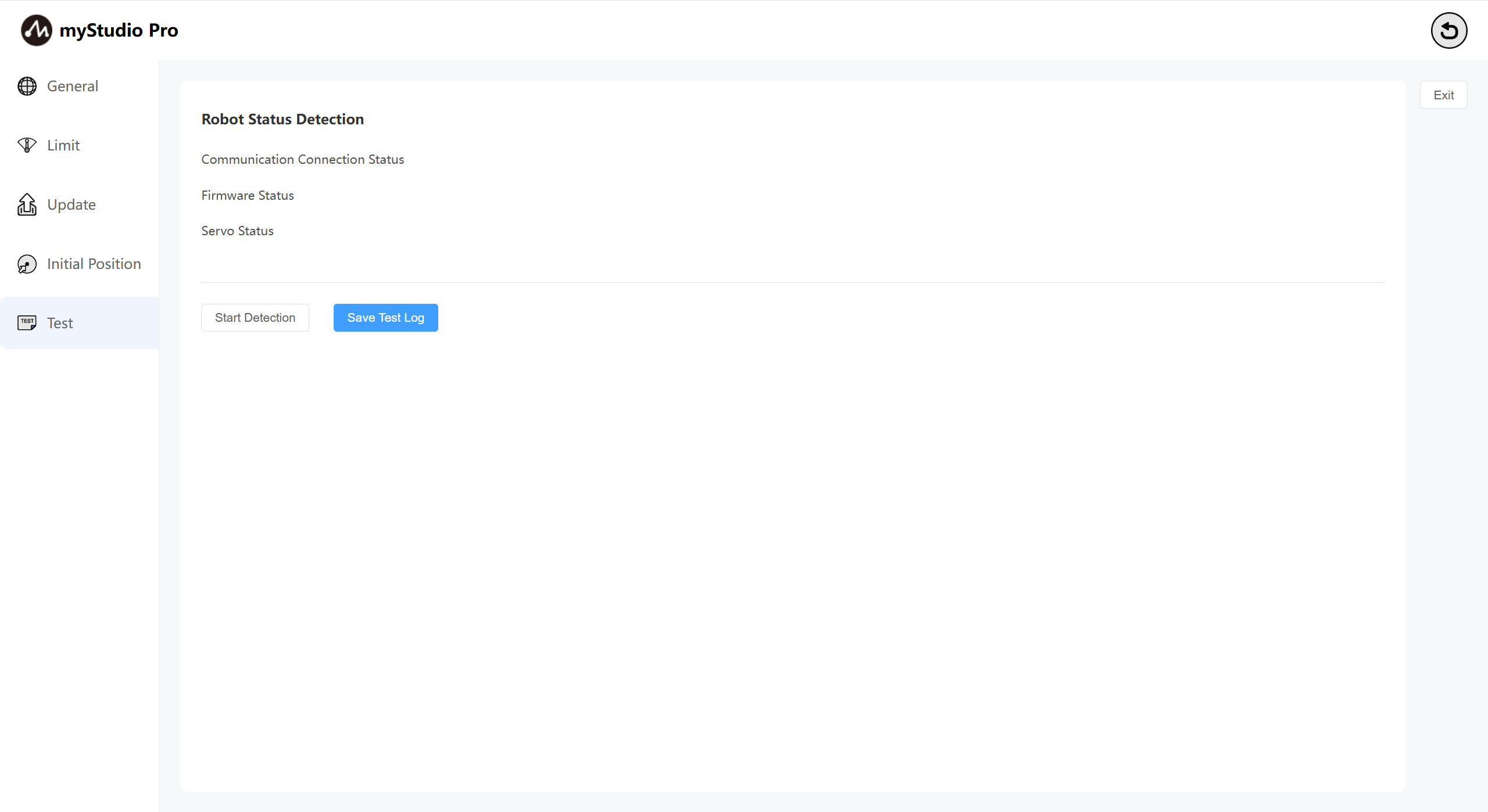 page: mainly tests the communication connection, firmware, servo and other status of the robot arm.