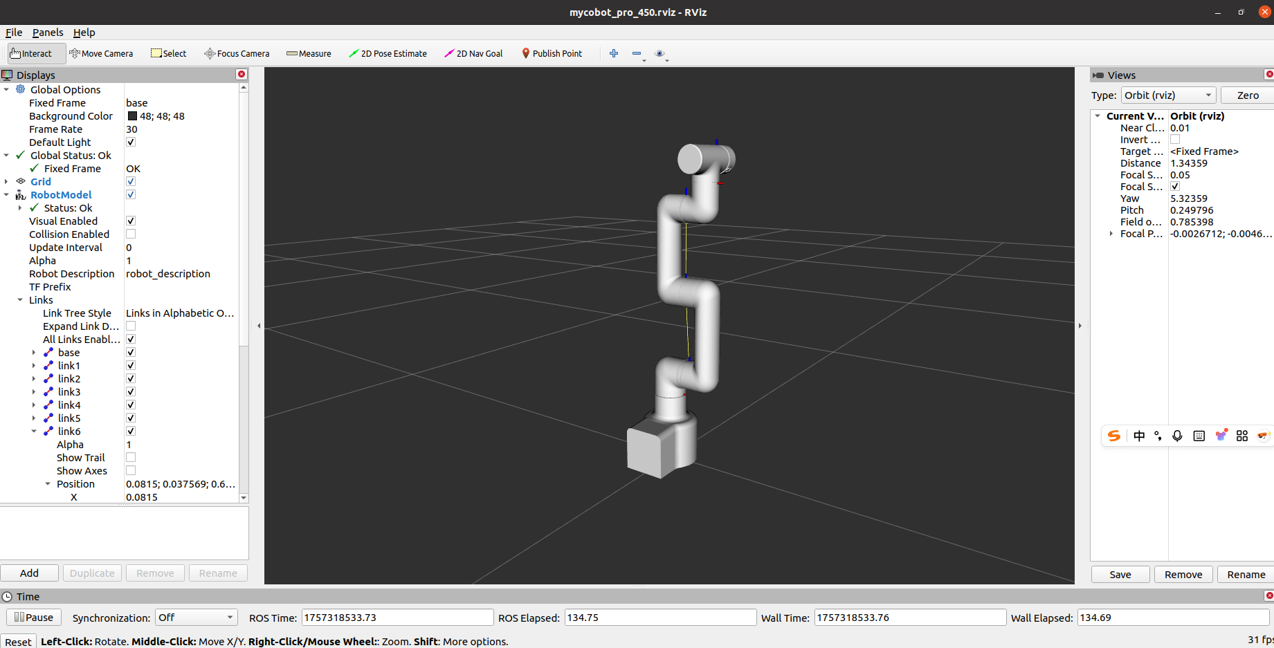 This will open rviz and display the model following effect. At this point, dragging the real robot arm joints will cause the simulation model to follow the real robot arm's movements.