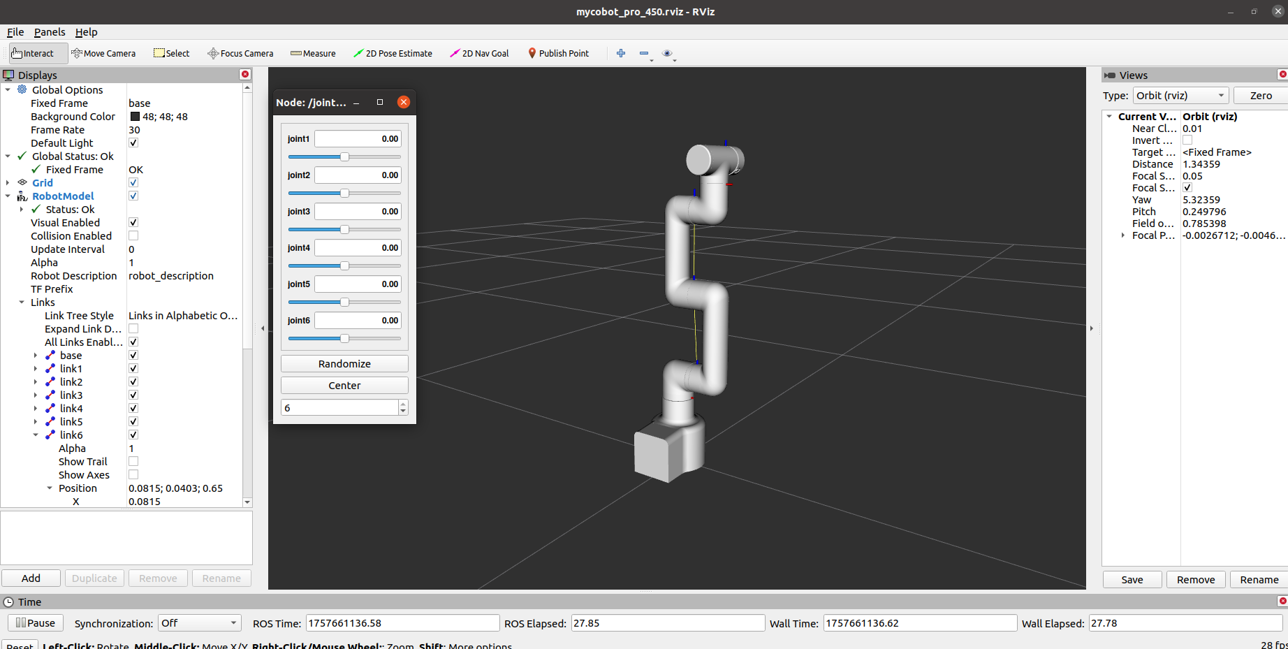 You can then control the model's movement in rviz2 by dragging the slider. The real mycobot will also move accordingly.