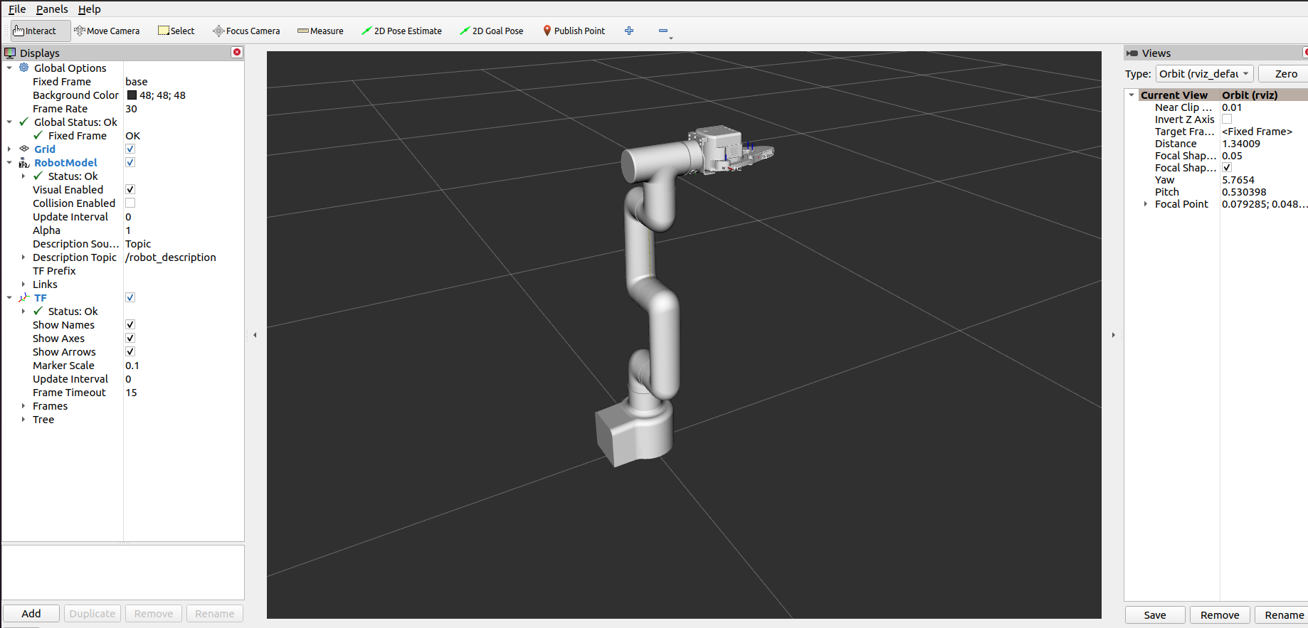 Note: Since the robot arm will move to the model's current position as you enter commands, please ensure that the model in rviz does not clip before using these commands.