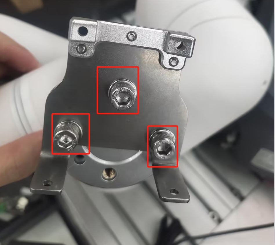 Use screws and washers to install the gripper connector to the end flange of the robot arm